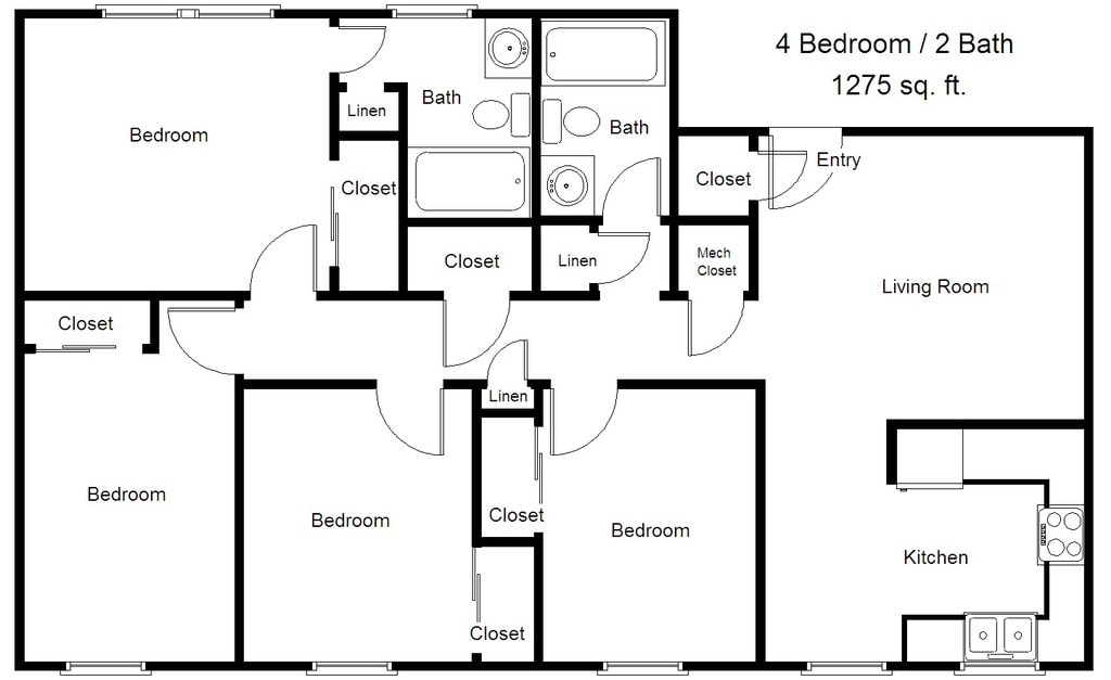 Apartment Model: Four BedroomCall For Rates4 Bedroom, 2 Bath, 1275 sq ftUnavailableFour Bedroom - Floorplan 1 Four Bedroom - Floorplan 2