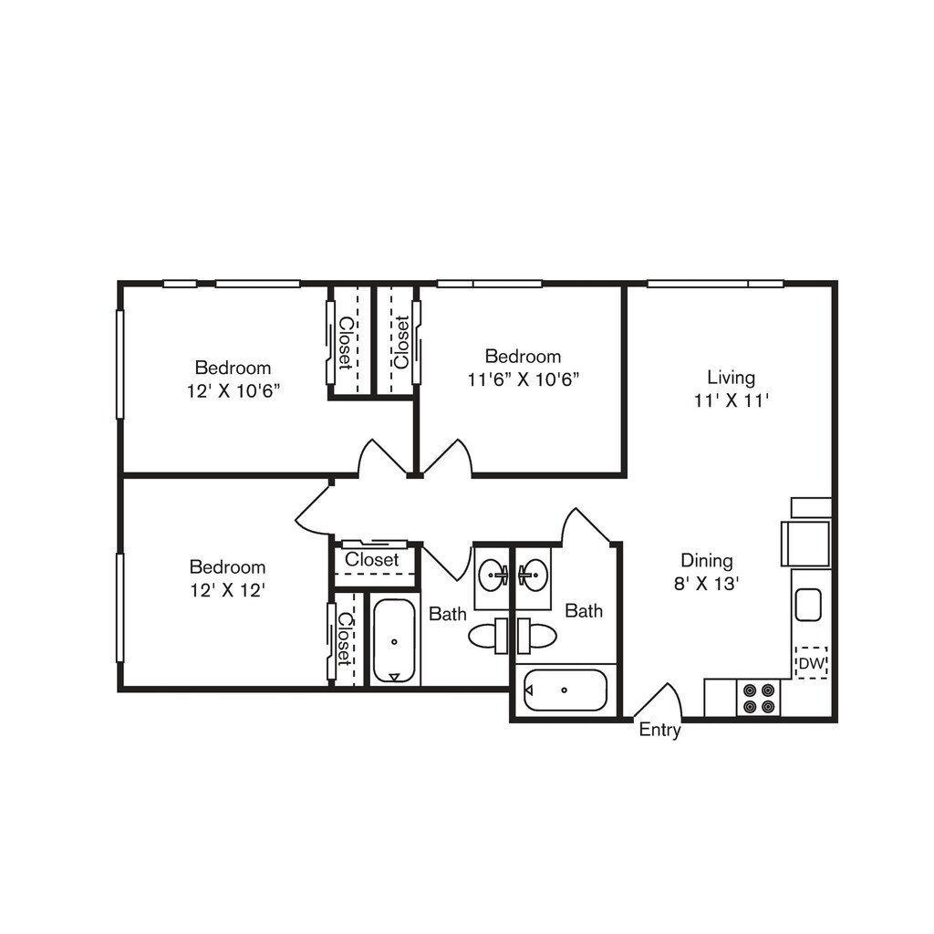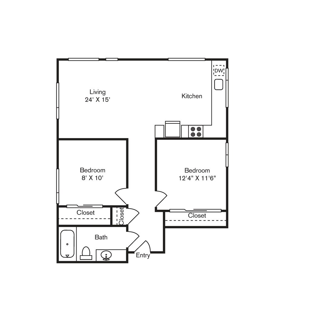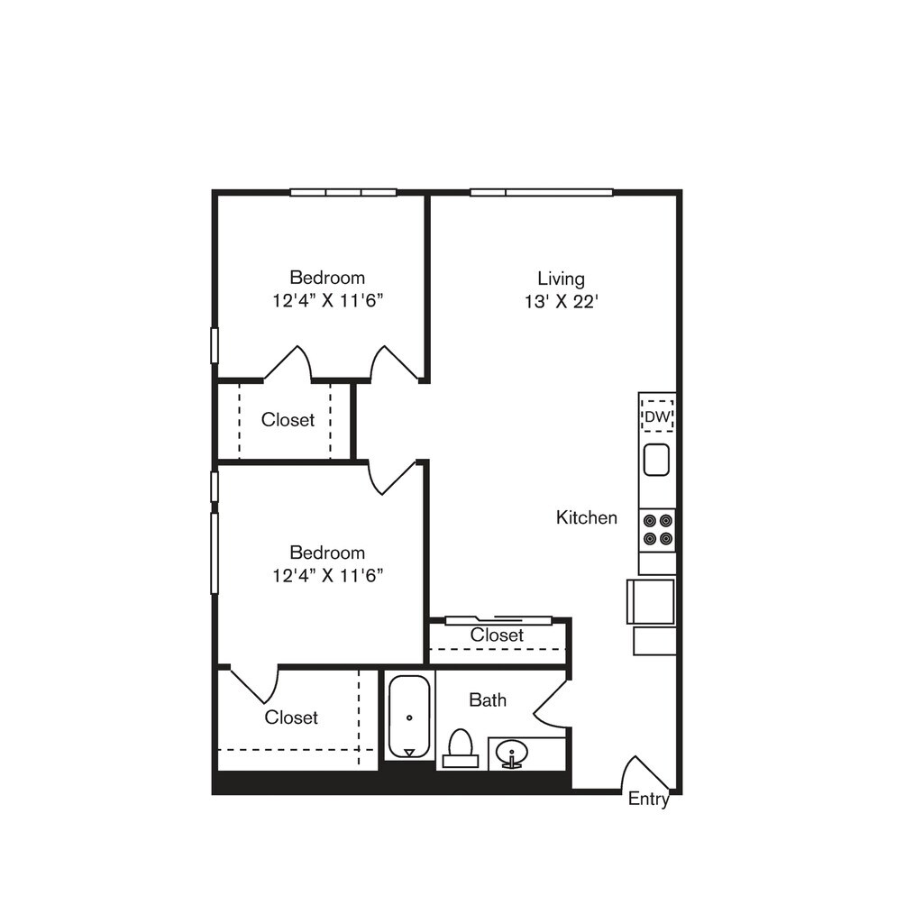 Apartment Model: B2 50From $1,4081 Bedroom, 1 Bath, 512 sq ftAvailable Now![]()