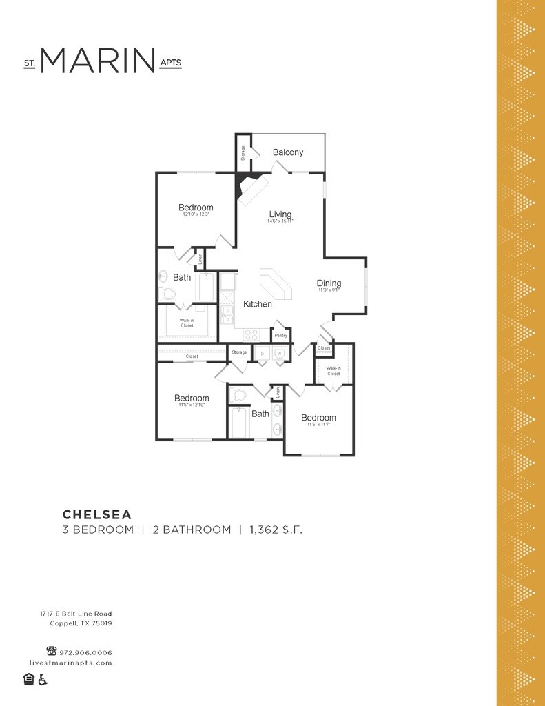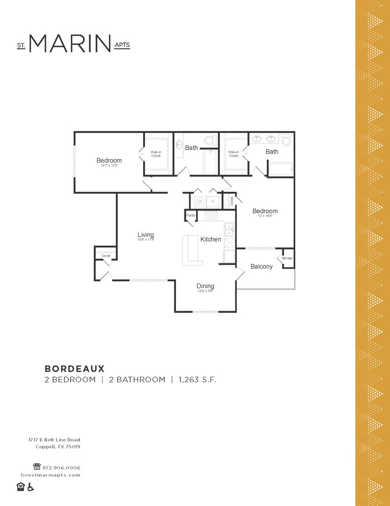 St. Marin offers 1 to 3 Bedroom apartments starting from $1,172 and having 600–1,843 sq ft. Here is the current pricing and availability: