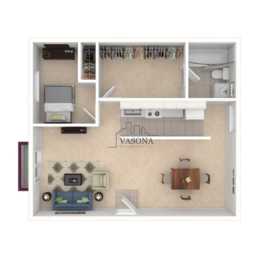 1 Bedroom 1 Bath - Floorplan 2 ![]()