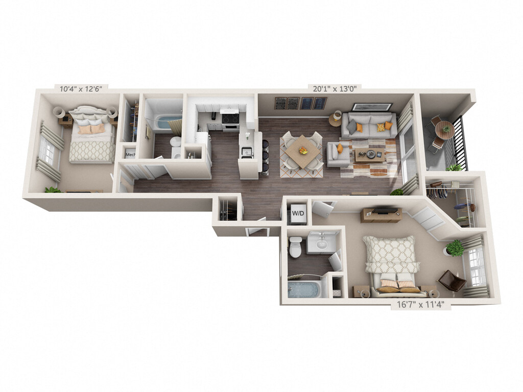 2 Beds, 2 Baths, 1001 sq ftAvailable NowModel Gallery