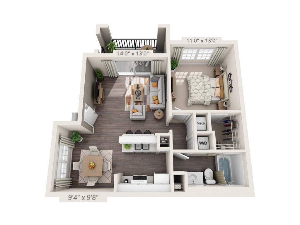1 Bed, 1 Bath, 842 sq ftAvailable NowModel Gallery