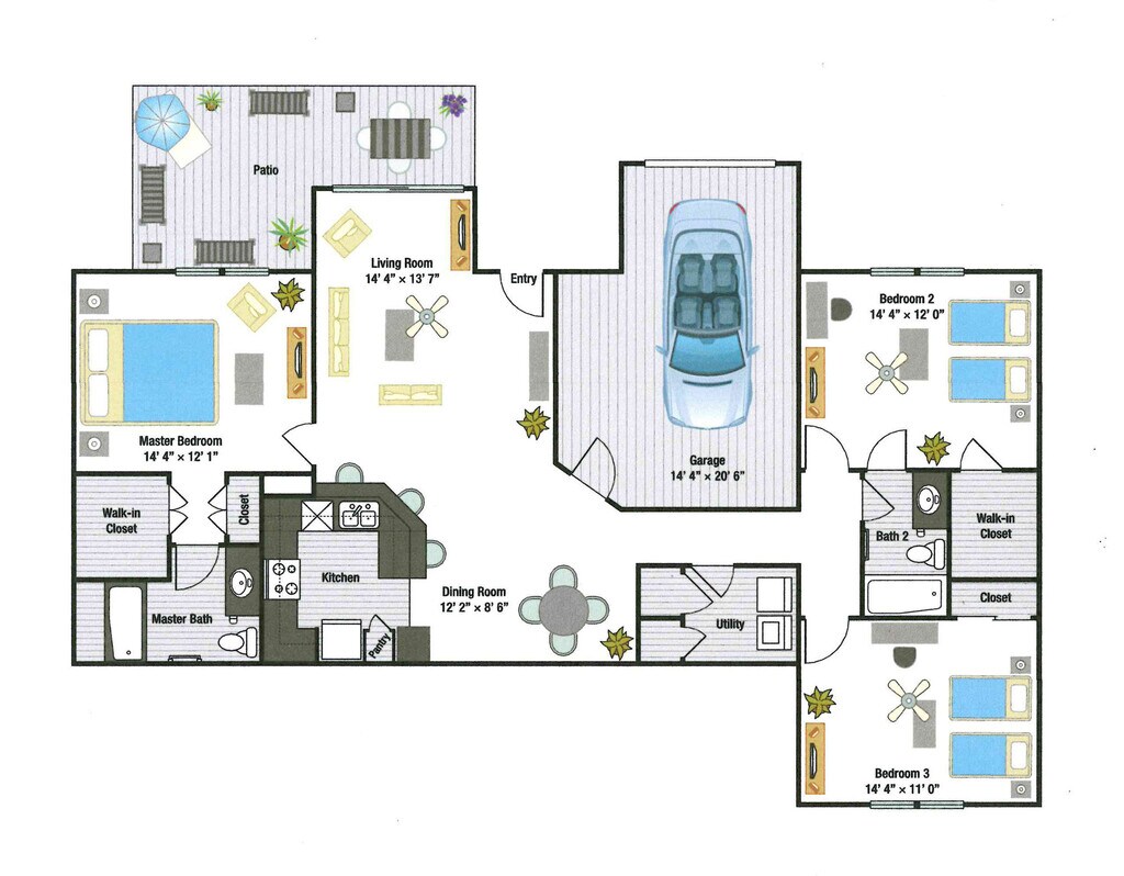 2 Beds, 2 Baths, 1200 sq ftAvailable NowModel Gallery