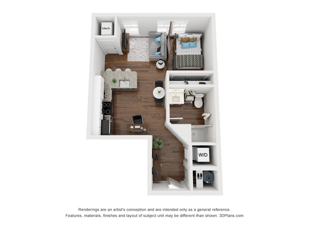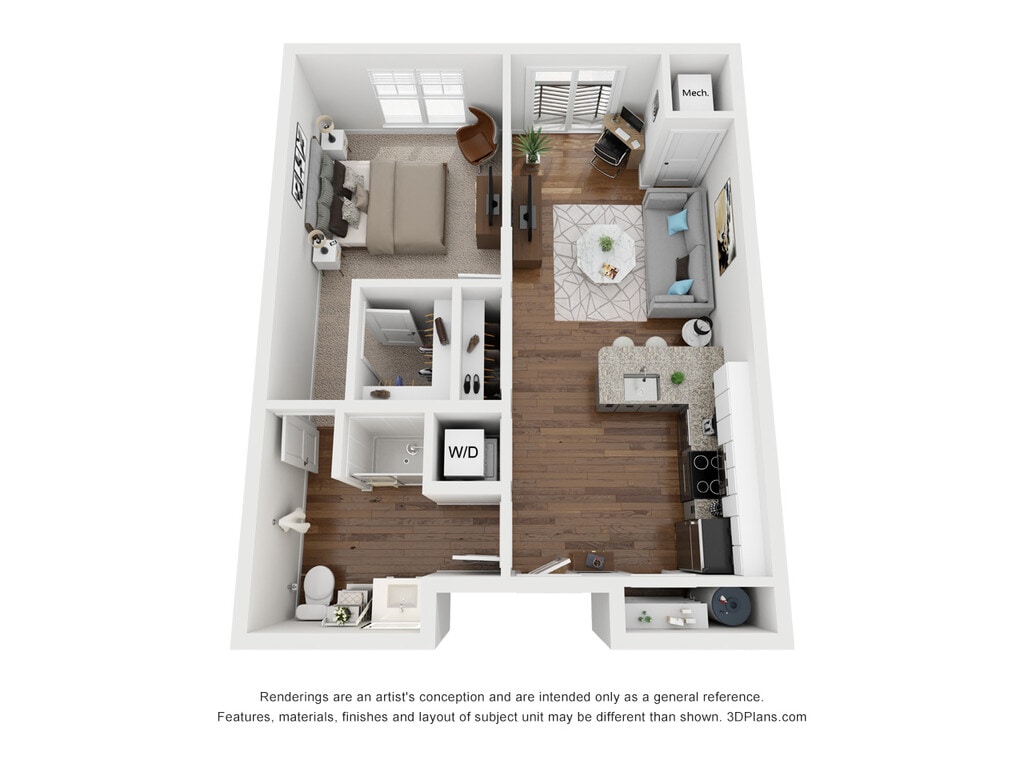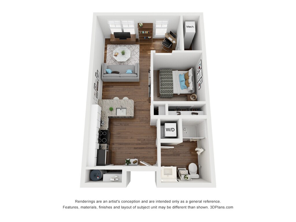 1 Bed, 1 Bath, 588 sq ftModel Gallery
