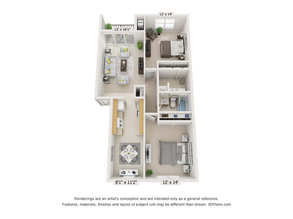 Apartment Model: Three Bedroom$1,7653 Bedroom, 2 Bath, 1270 sq ftUnavailable![]()
