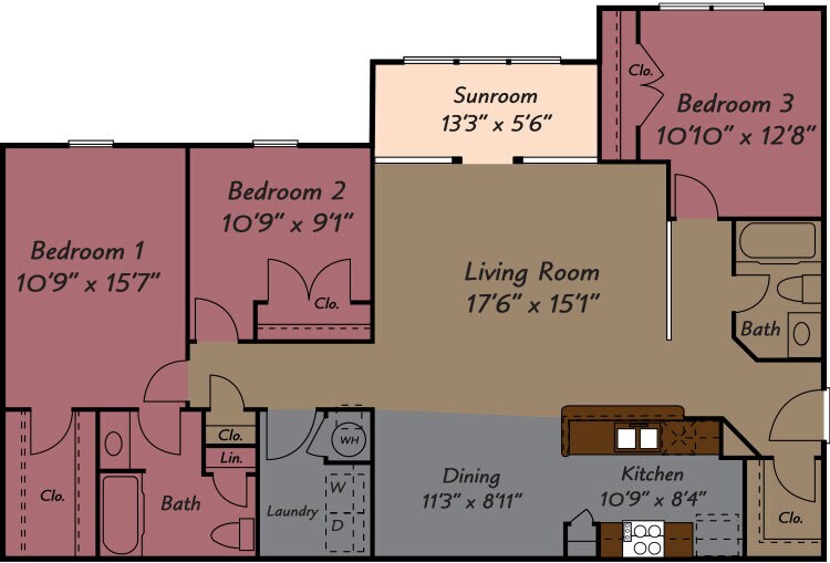 Apartment Model: 1x1 Sunroom$1,1691 Bedroom, 1 Bath, 899 sq ftUnavailable![]()