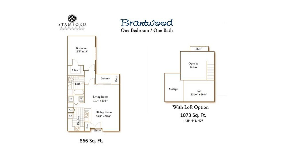 Availability Date Unit Sq Ft Call for Availability 1 Bed/1 Bath-Brantwood w/Loft 1073 sq ft Model Amenities and Features