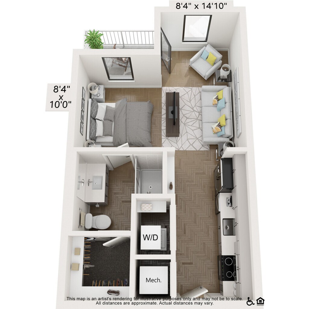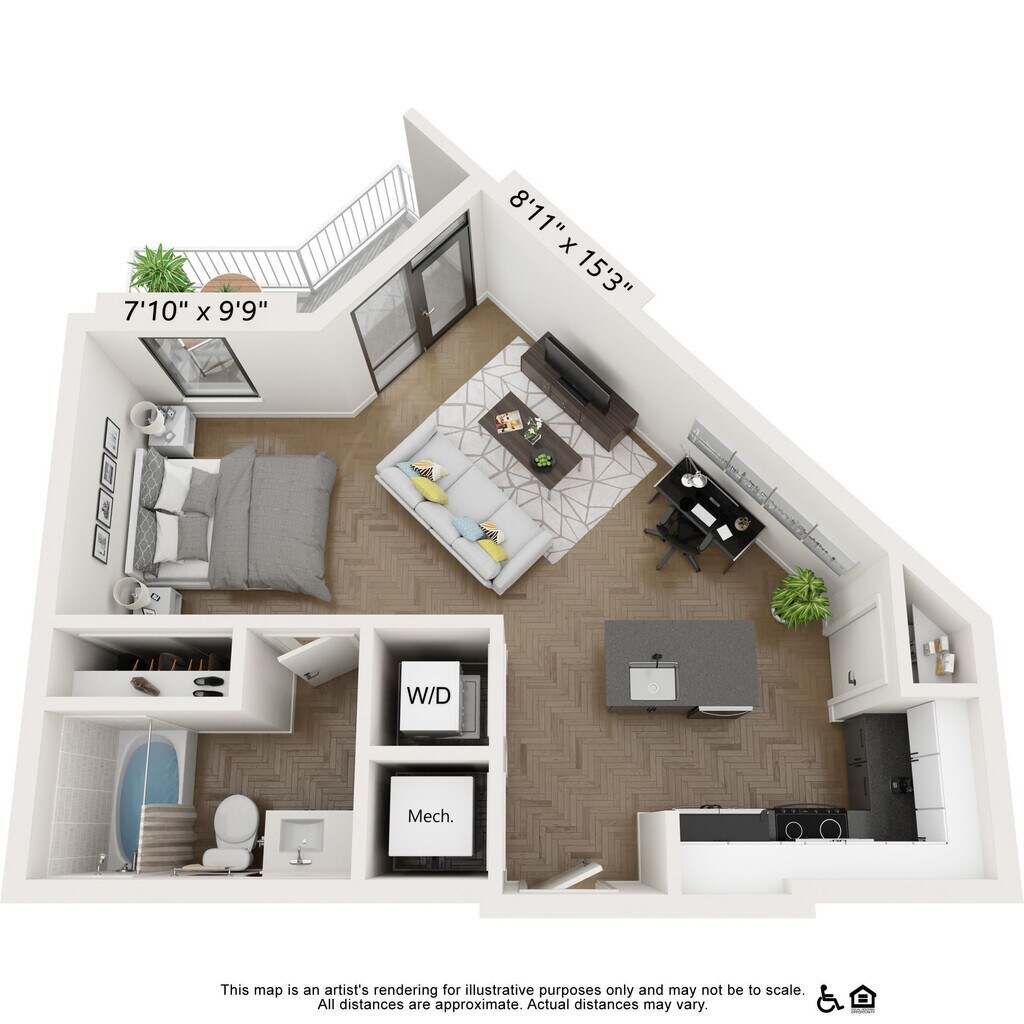 Apartment Model: S1From $1,599Studio, 1 Bath, 493 sq ftAvailable October 21, 2025Floor plans are artist's rendering. All dimensions are approximate. Actual product and specifications may vary in dimension or detail. Not all features are available in every rental home. Prices and availability are subject to change. Base rent is based on monthly frequency. Additional fees may apply, such as but not limited to package delivery, trash, water, amenities, etc. Deposits vary. Please see a representative for details.