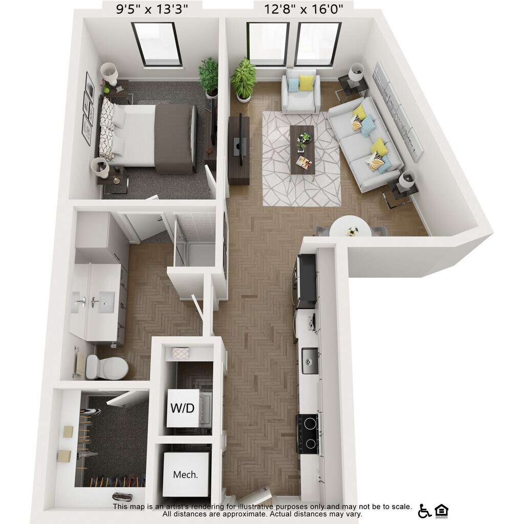 1 Bed, 1 Bath, 597 sq ftAvailable NowModel Gallery