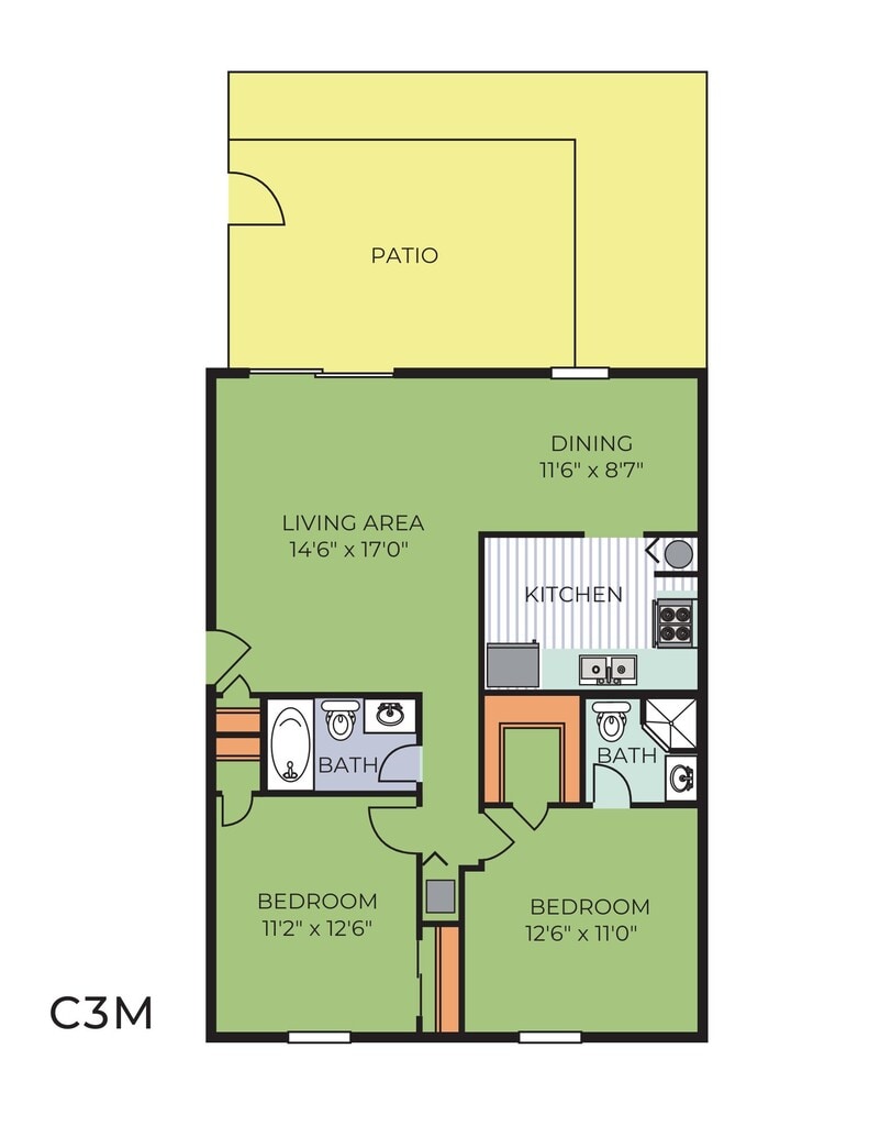 Apartment Model: Two Bedroom Two Bathroom (C3M)From $1,0632 Bedroom, 2 Bath, 970 sq ftUnavailable![]()