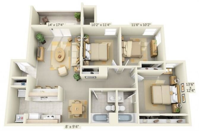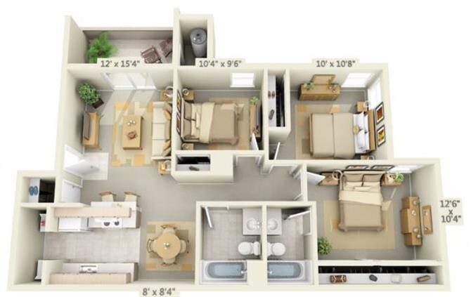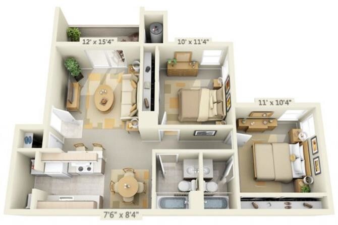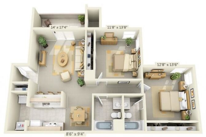 Apartment Model: Waterford2 Bedroom, 1 Bath, 852 sq ftAvailable Now![]()