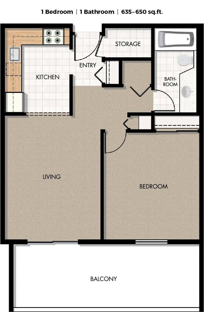 1 Bed, 1 Bath, 650 sq ftAvailable NowModel Gallery