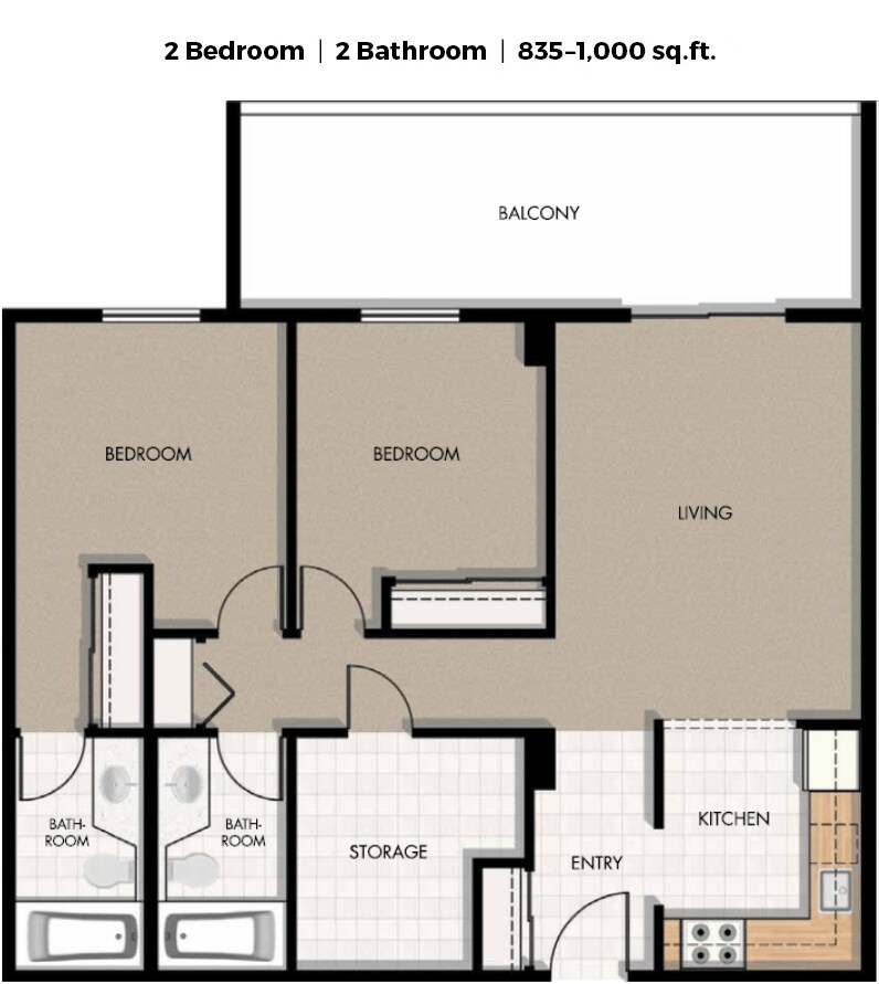 2 Beds, 2 Baths, 1000 sq ftAvailable NowModel Gallery