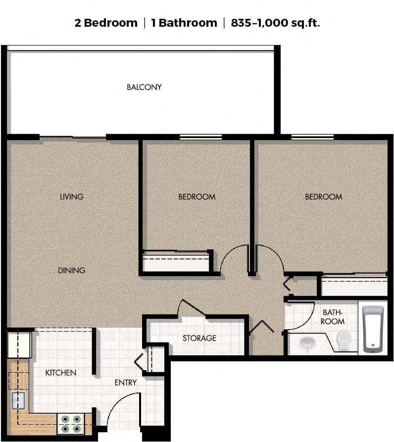 2 Beds, 1 Bath, 835-1000 sq ftAvailable NowModel Gallery