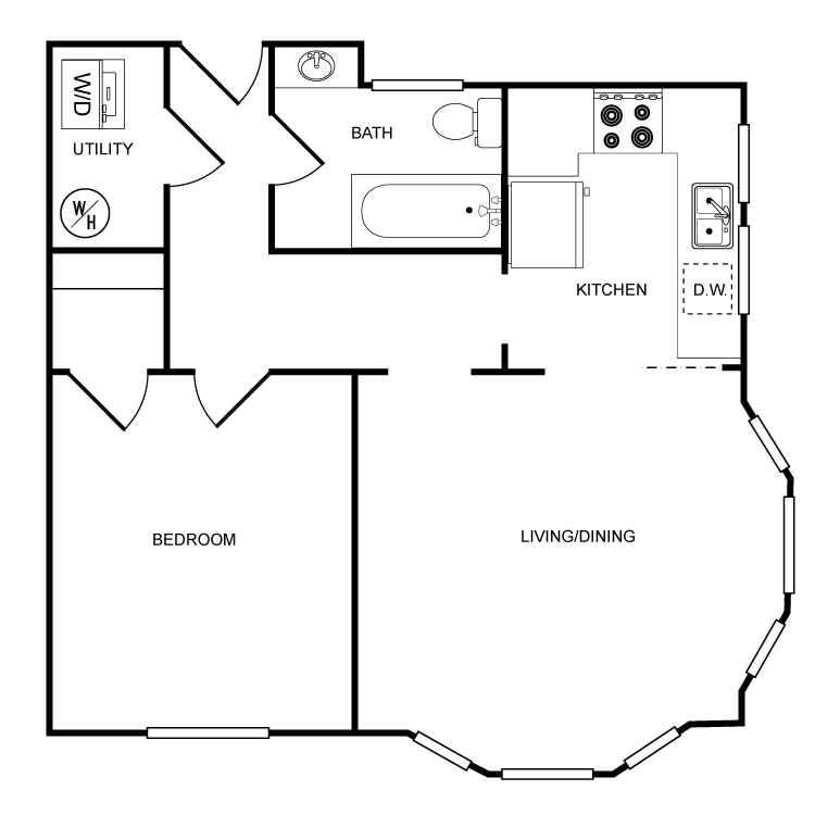 1 Bed, 1 Bath, 600 sq ftModel Gallery