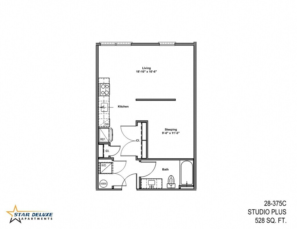 Studio Plus - Floorplan 1 Apartment Unit: 158-375FApartment Model: Studio Plus$2,013Studio, 1 Bath, 527 sq ftAvailable Now![]()