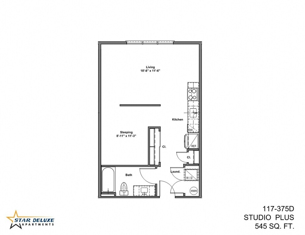 Studio Plus - Floorplan 1 Apartment Unit: 117-375DApartment Model: Studio Plus$1,968Studio, 1 Bath, 545 sq ftAvailable April 3, 2026![]()