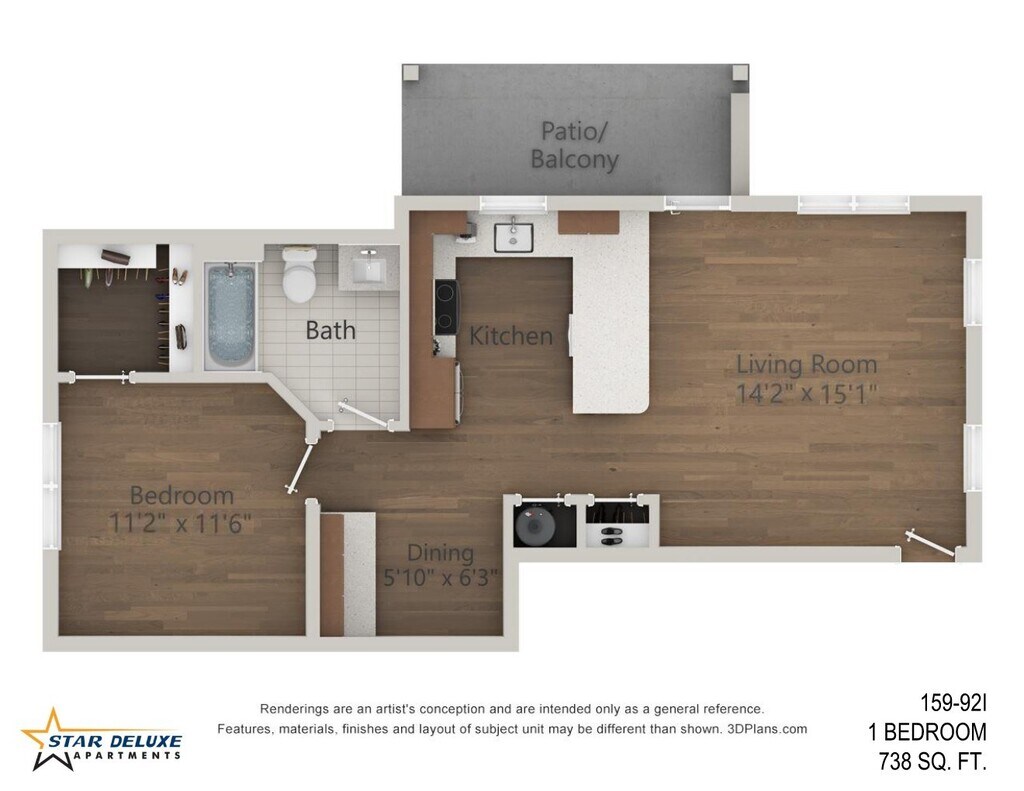 Unit: 152-92H - Image 2 Apartment Unit: 159-92IApartment Model: One Bed$2,5331 Bedroom, 1 Bath, 738 sq ftAvailable Now![]()
