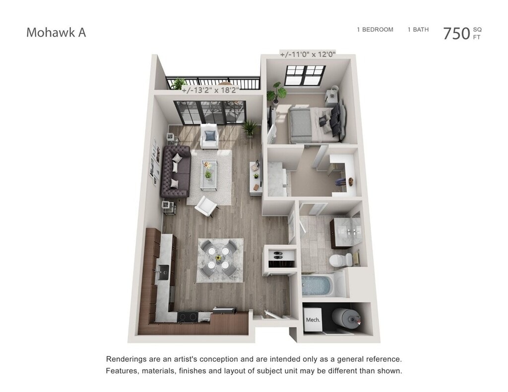 Apartment Model: Mohawk A Building 20 & 30$1,7701 Bedroom, 1 Bath, 750 sq ftUnavailable![]()