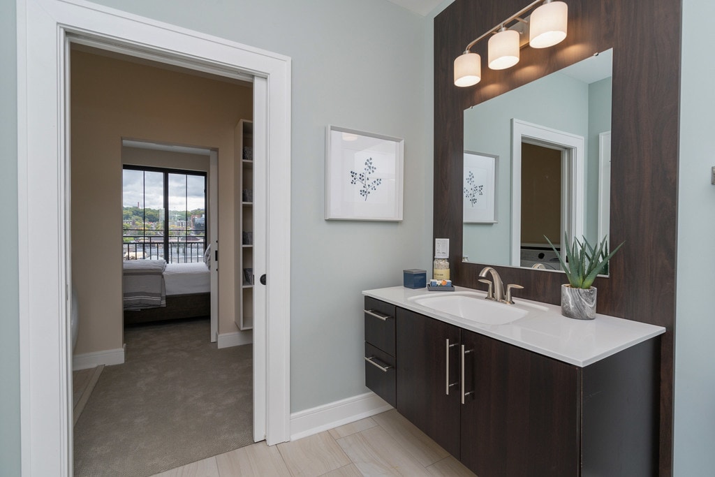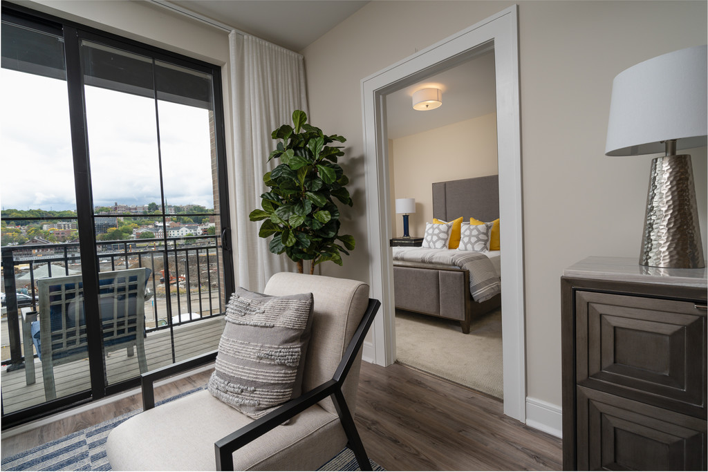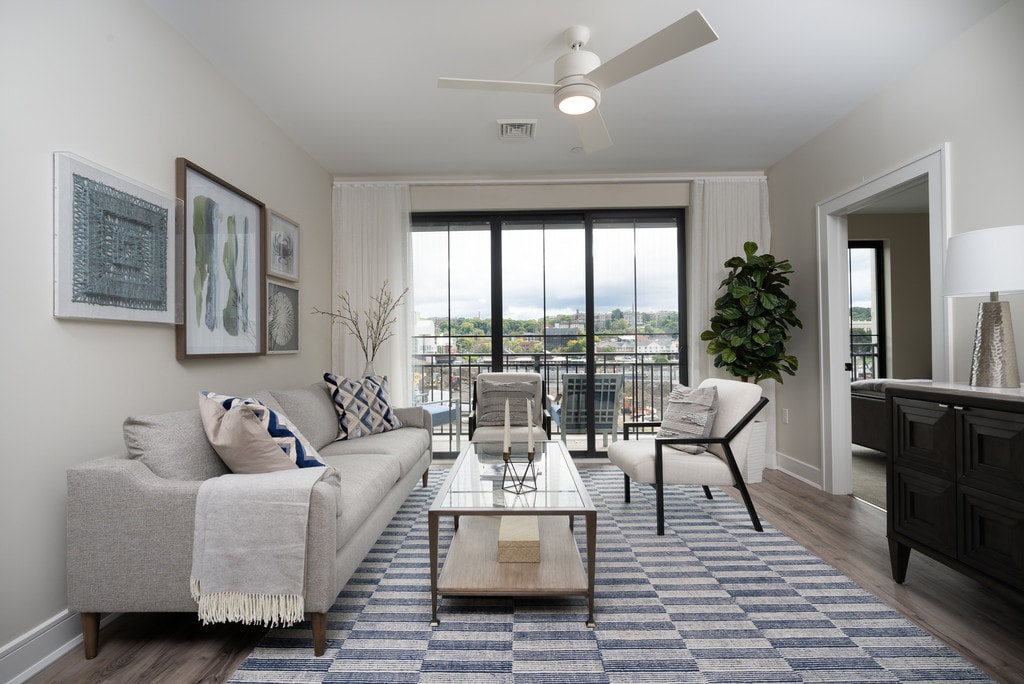 The Hudson - Modern 2 Bedroom 2 Bath Corner Unit - The Hudson Floorplan is a luxurious 2 bedroom 2 bath unit providing exceptional style, comfort and convenience. Located on the corner of the building, The Hudson get's lots of natural light with views from every window. The unit offers modern upscale finishes including quartz counter tops, tile and hardwood flooring, stainless steel appliances, tiled backsplash & under-cabinet lighting, SMART home technology and video intercom entry. Central air, full size washer & dryer in each apartment home are also included. Pet friendly (restrictions apply, call for details). Come relax and enjoy the river views, swimming pool, or an afternoon on the Island's walking path. (RLNE5222773)