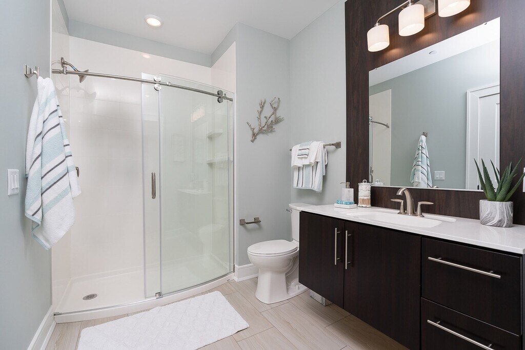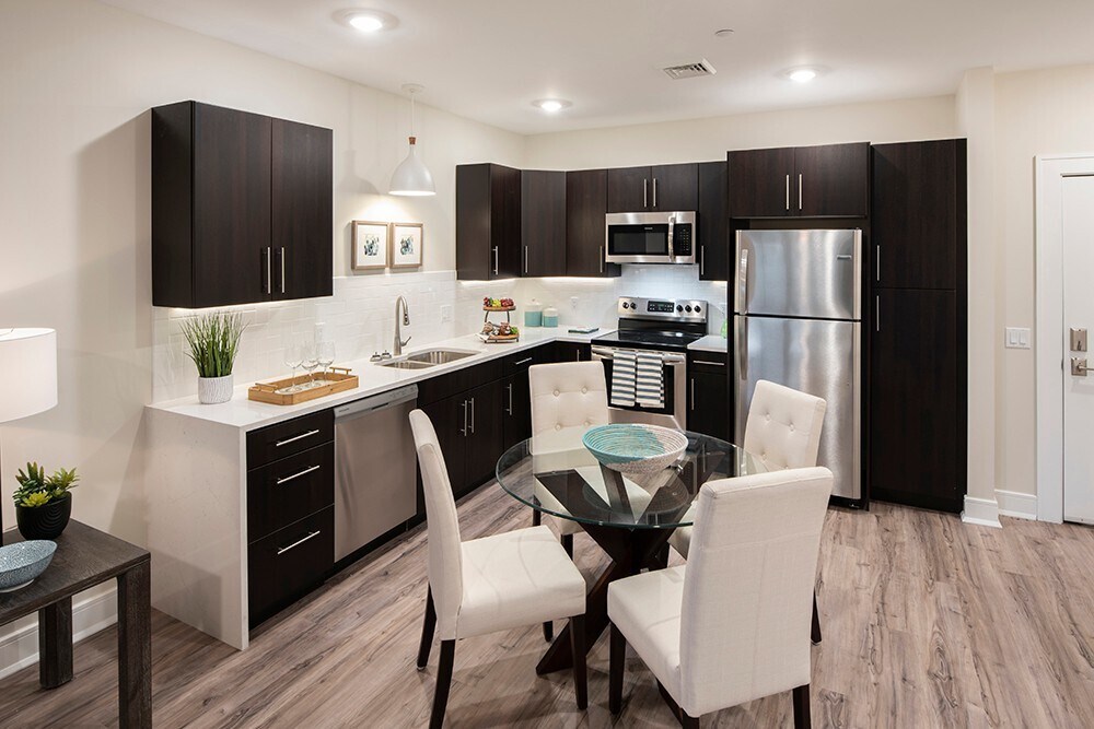 This Luxurious 1 bedroom 1 bath unit provides exceptional style, comfort and convenience, offering modern upscale finishes including quartz counter tops, tile and hardwood flooring, stainless steel appliances, tiled backsplash & under-cabinet lighting, SMART home technology and video intercom entry. Central air, full size washer & dryer in each apartment home are also included. Pet friendly (restrictions apply, call for details). Come relax and enjoy the river views, swimming pool, or an afternoon on the Island's walking path.