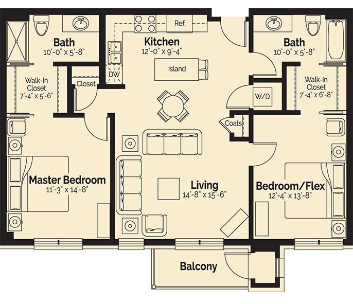 2 Beds, 2 Baths, 1376 sq ftModel Gallery