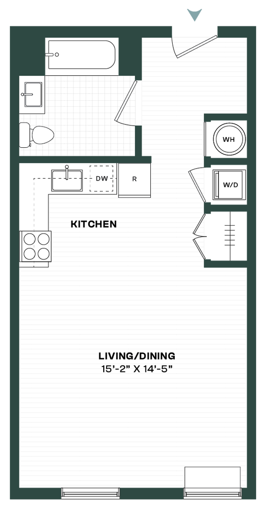 S2 - Floorplan 1 Apartment Unit: 504Apartment Model: S2$2,472Studio, 1 Bath, 414 sq ftAvailable NowFloorplan S1