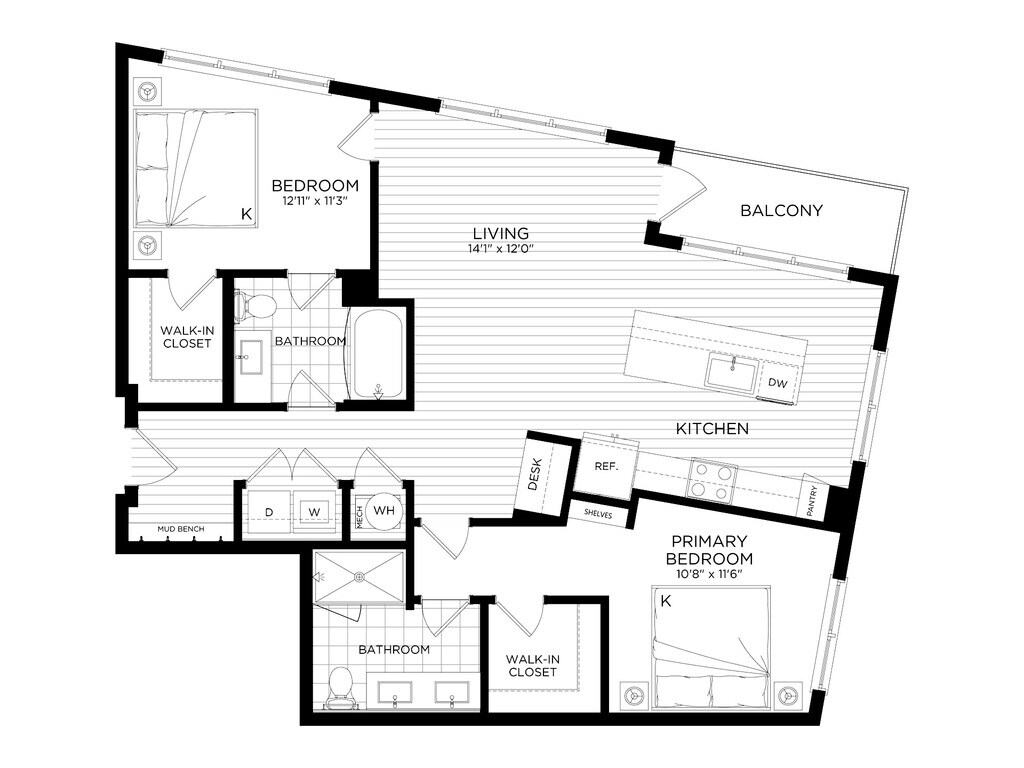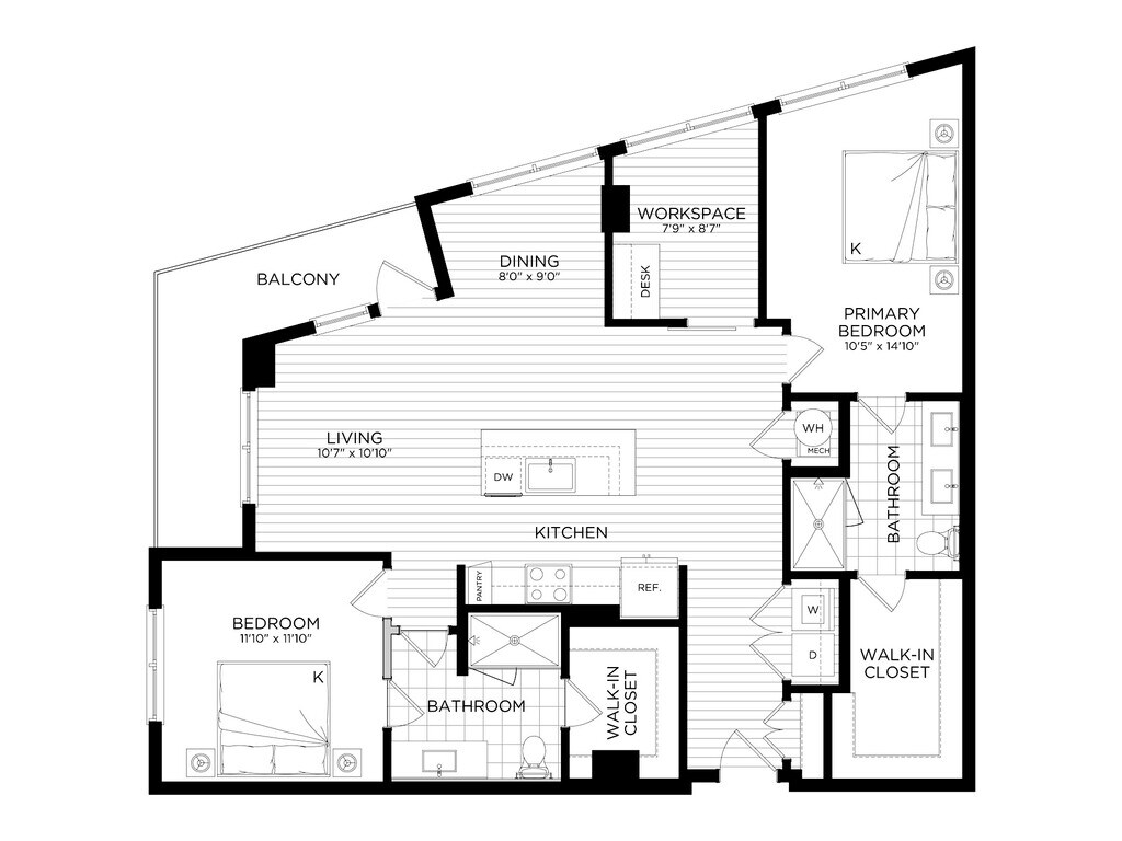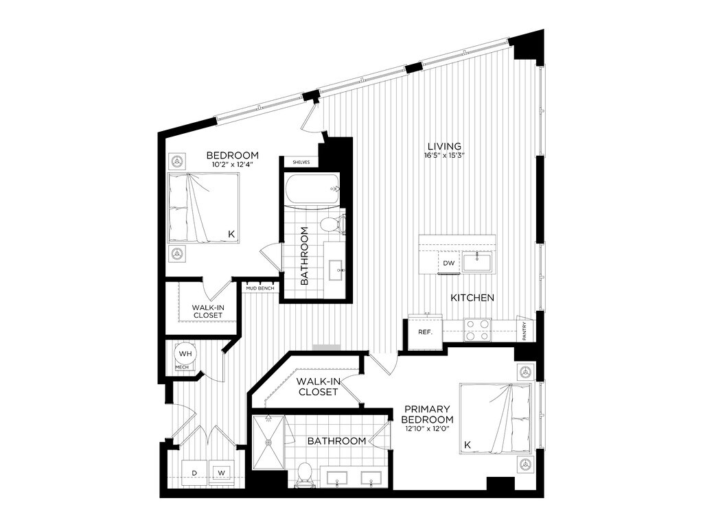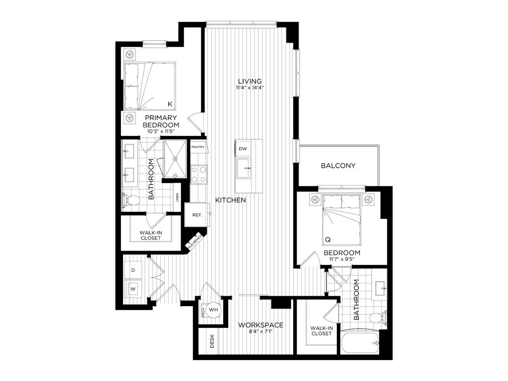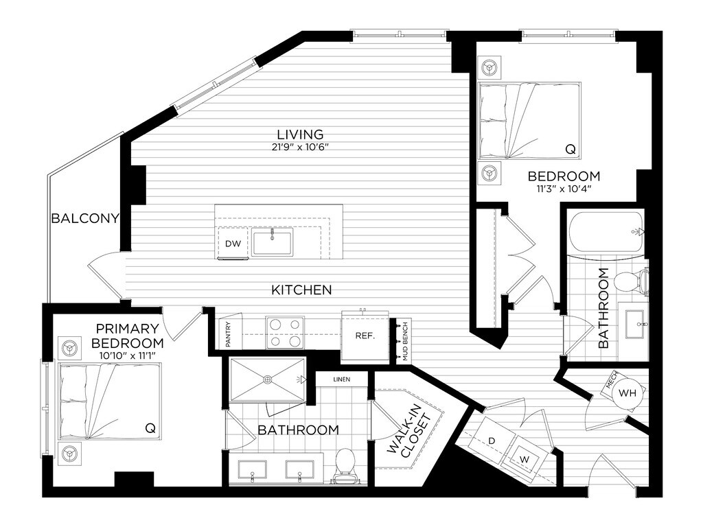Apartment Model: 2 Bed/2 Bath-B5From $2,8682 Bedroom, 2 Bath, 1037 sq ftAvailable NowFloor plans are artist's rendering. All dimensions are approximate. Actual product and specifications may vary in dimension or detail. Not all features are available in every rental home. Please see a representative for details.