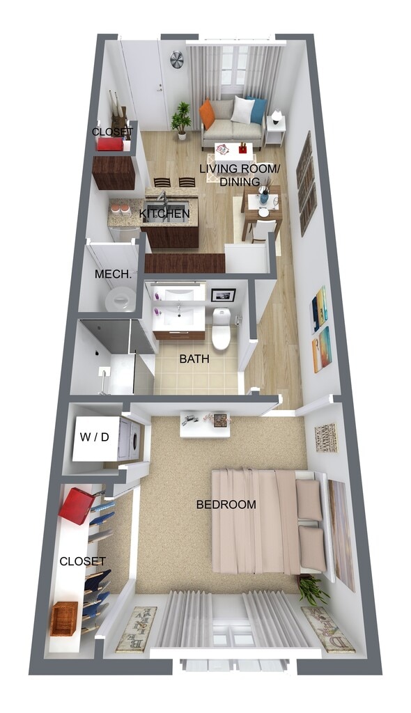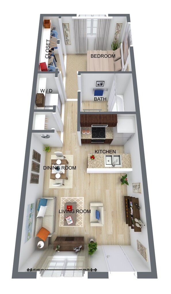 1 Bed, 1 Bath, 504 sq ftModel Gallery