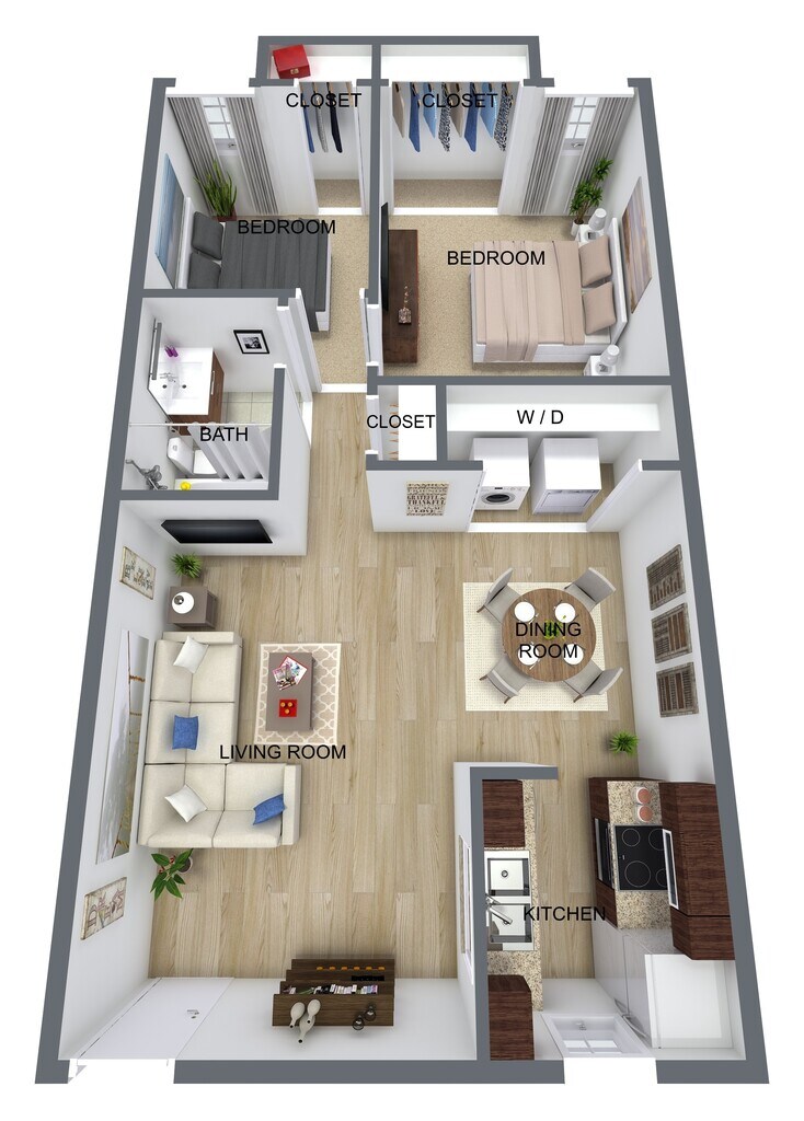 2 Beds, 1 Bath, 732 sq ftAvailable NowModel Gallery