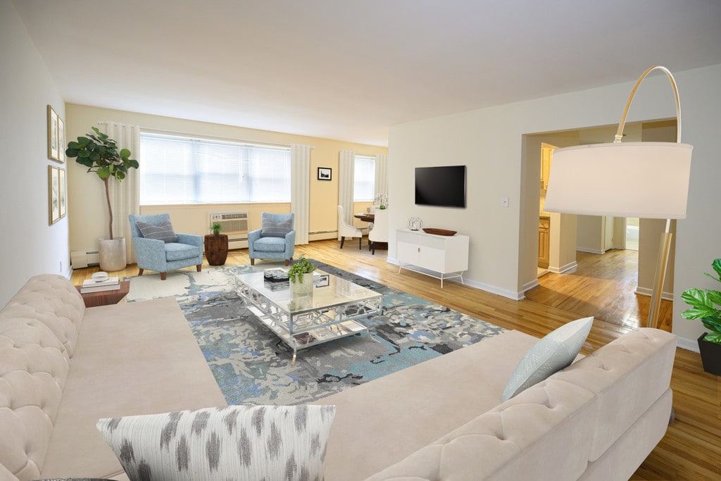 Located in the center of town, State Gardens offers unparalleled access to major transportation and highways. The property is within walking distance to stores and restaurants, and is just steps away from the HACPAC Performing Arts Center. A one-time 1/2 months rent brokerage fee is payable at lease closing, after which you can settle into your new, comfortable home in the heart of Hackensack. CJ Lombardo Licensed Real Estate Brokers.