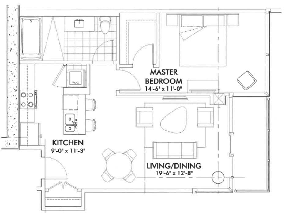 1 Bed, 1 Bath, 827 sq ftAvailable NowLargest 1 BedroomThis is the largest 1 Bedroom at this PropertyModel Gallery