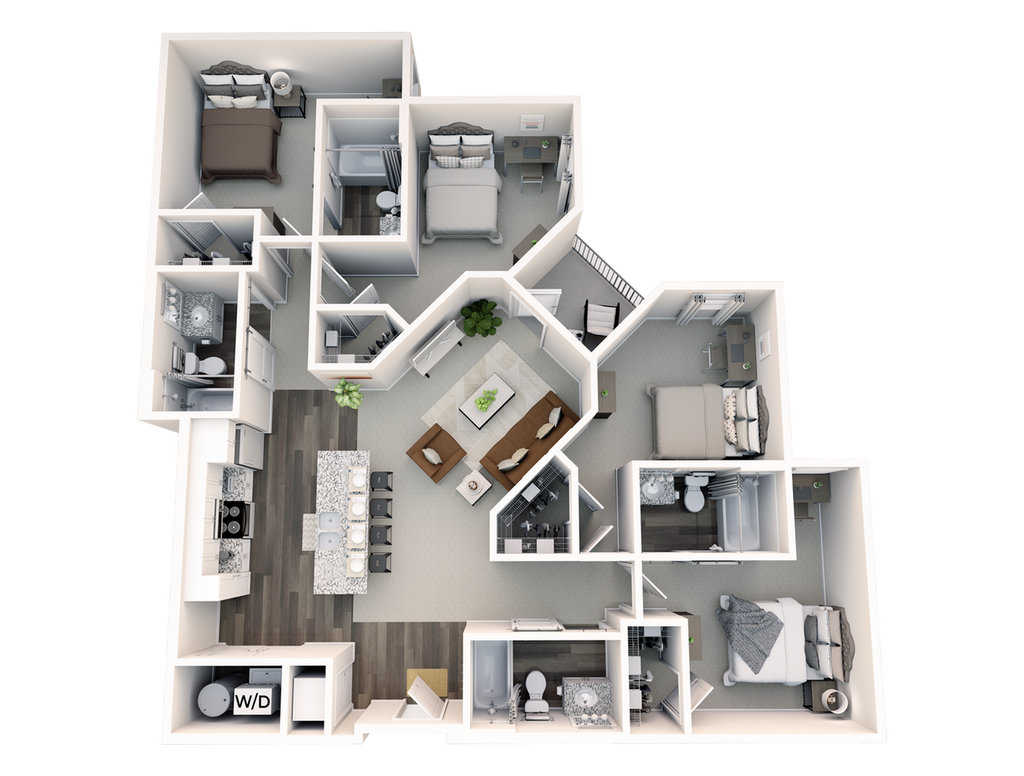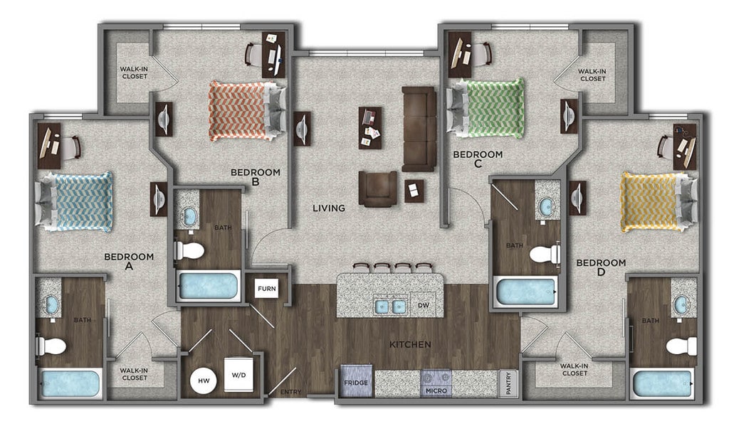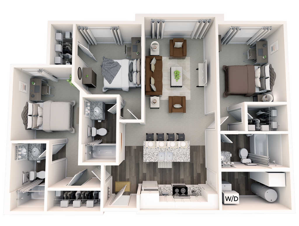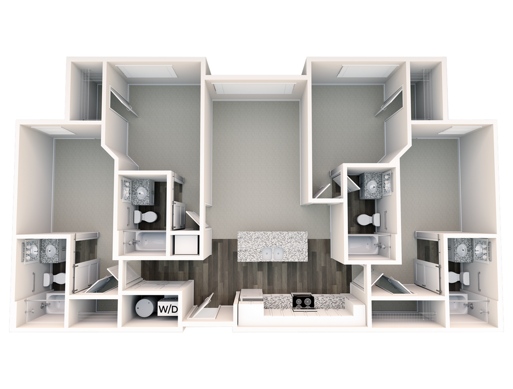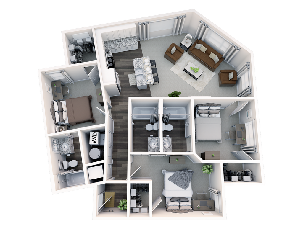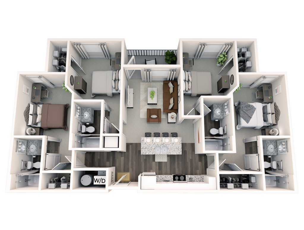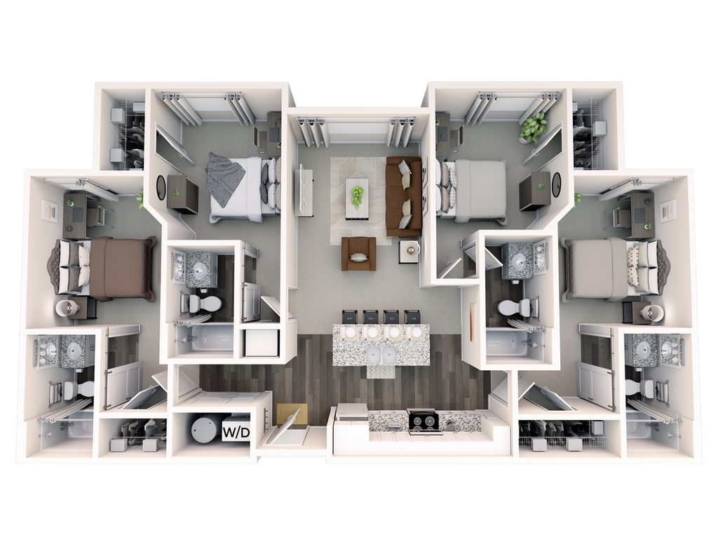 Statehouse Highline is an off-campus student apartment community in Columbus, OH, that features 1, 2, 3, & 4-bedroom apartments directly adjacent to The Ohio State University. This community is close to classes, shopping, nightlife, and restaurants. The first floor features Popeyes, Great Clips, Bank of America, and other exciting retail! Our fully furnished off-campus apartments feature thoughtful touches like granite countertops, stainless steel appliances, a full-size washer and dryer, private bathrooms, high-speed internet, and more!
