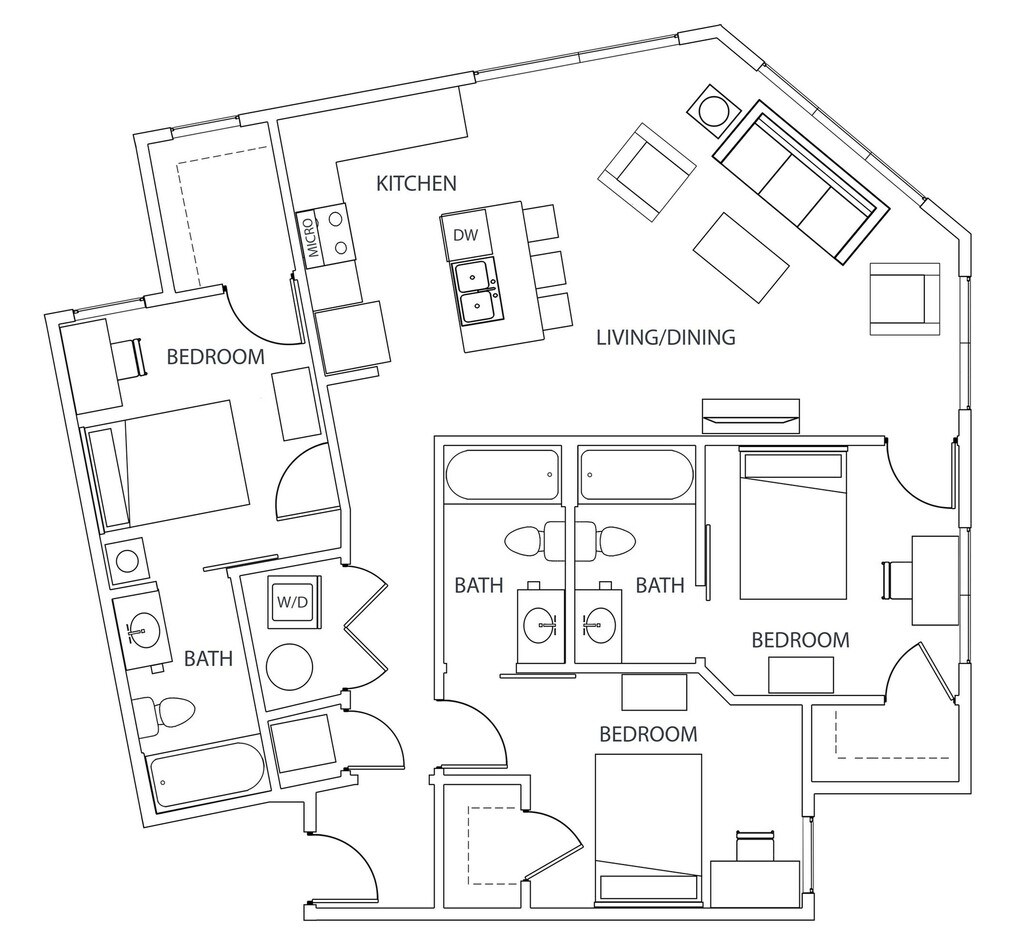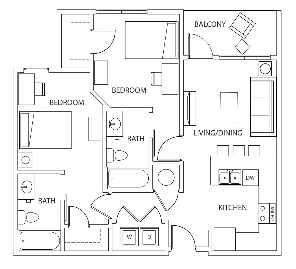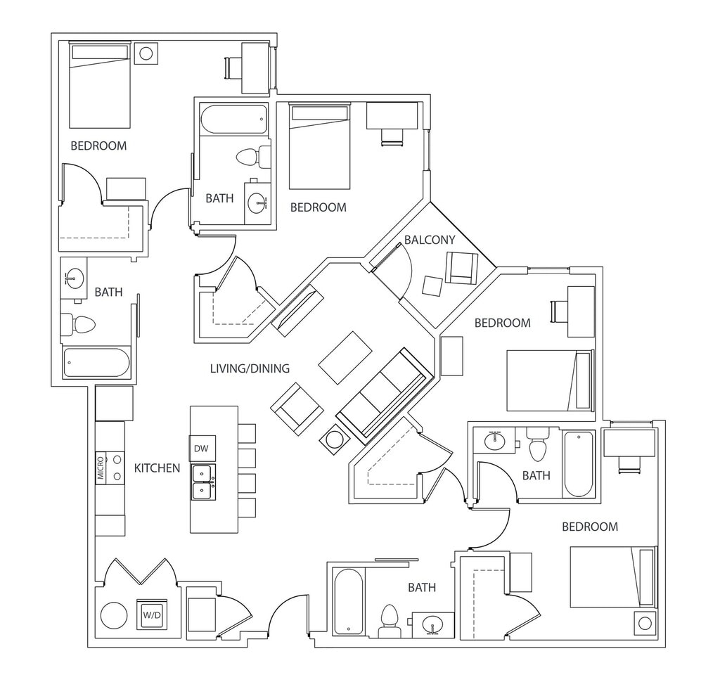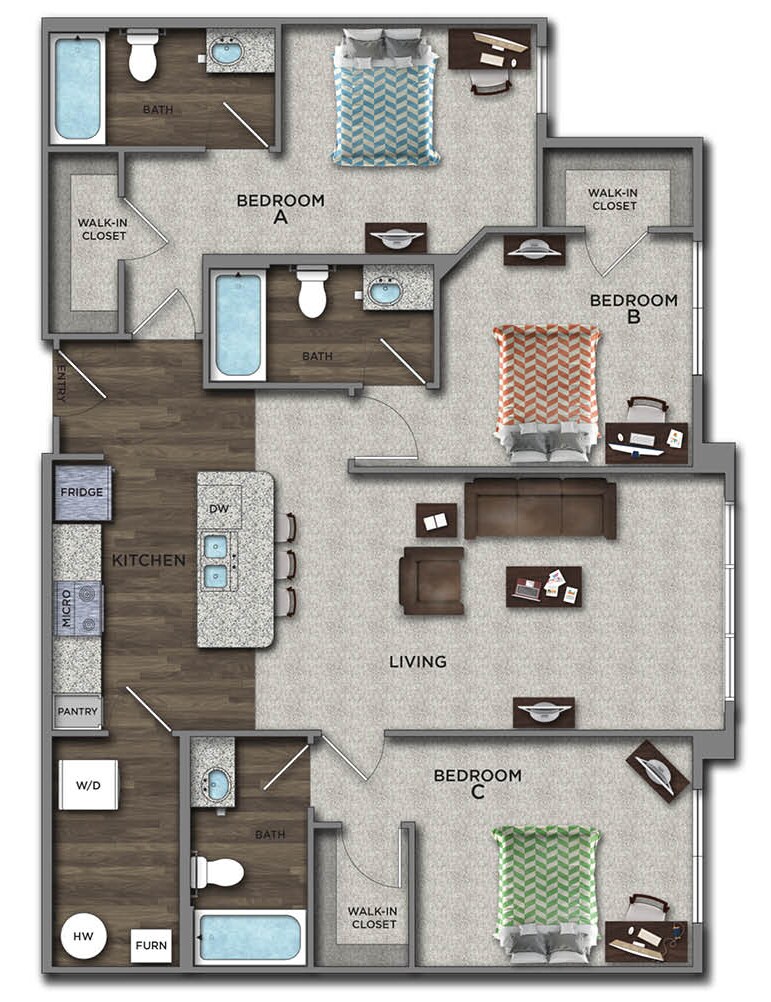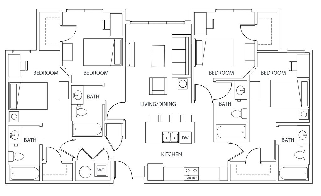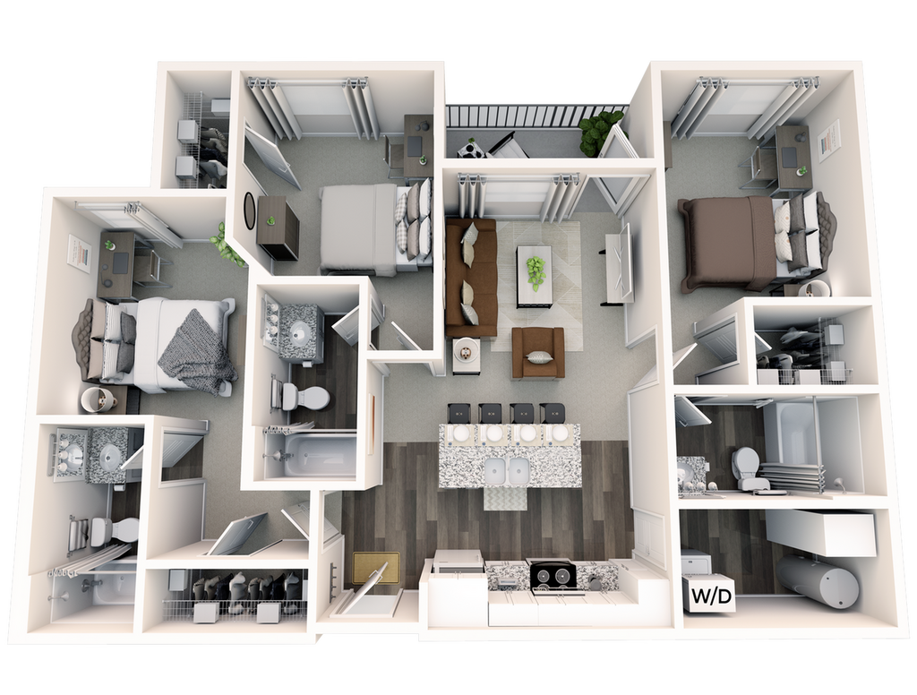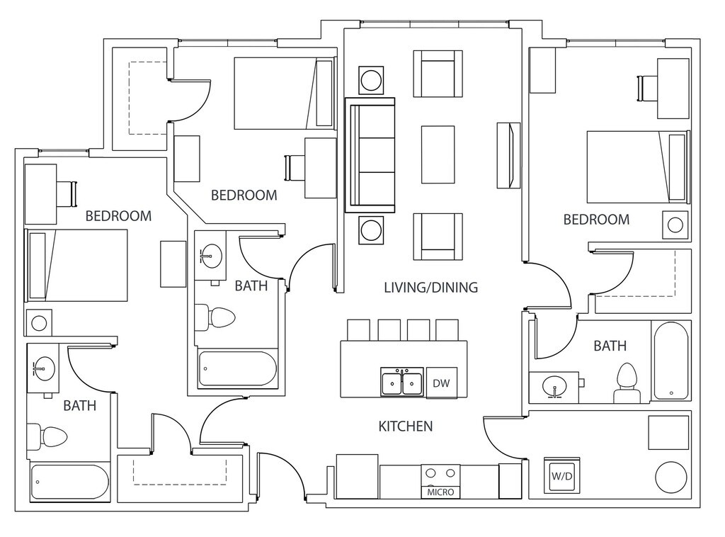 Statehouse Highline is an off-campus student apartment community in Columbus, OH, that features 1, 2, 3, & 4-bedroom apartments directly adjacent to The Ohio State University. This community is close to classes, shopping, nightlife, and restaurants. The first floor features Popeyes, Great Clips, Bank of America, and other exciting retail! Our fully furnished off-campus apartments feature thoughtful touches like granite countertops, stainless steel appliances, a full-size washer and dryer, private bathrooms, high-speed internet, and more!