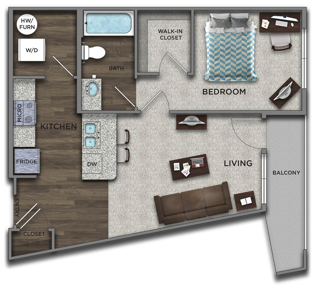 1 Bed, 1 Bath, 624 sq ftAvailable NowModel Gallery