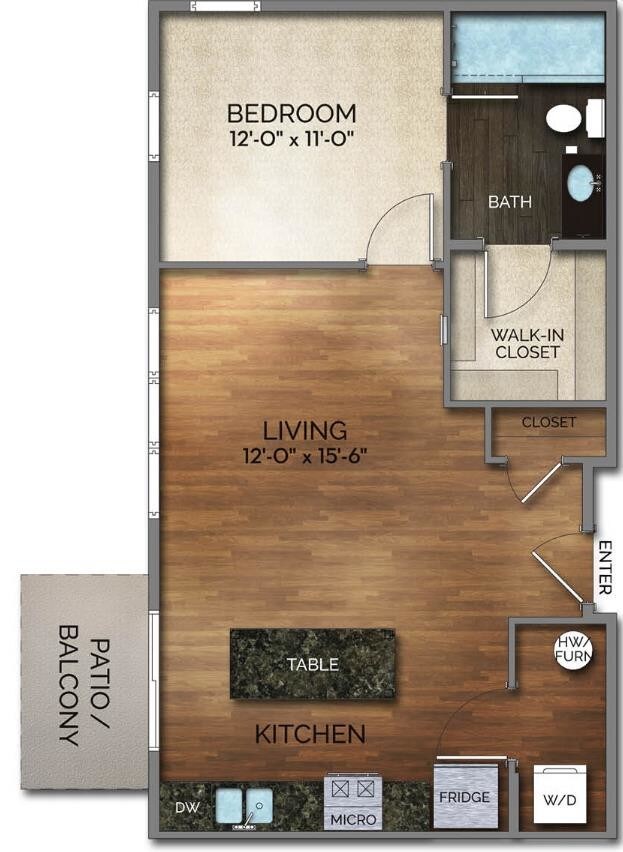 Studio, 1 Bath, 617 sq ftAvailable NowLargest StudioThis is the largest Studio at this PropertyModel Gallery