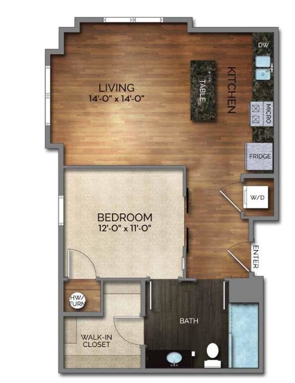 Studio, 1 Bath, 534 sq ftAvailable NowModel Gallery