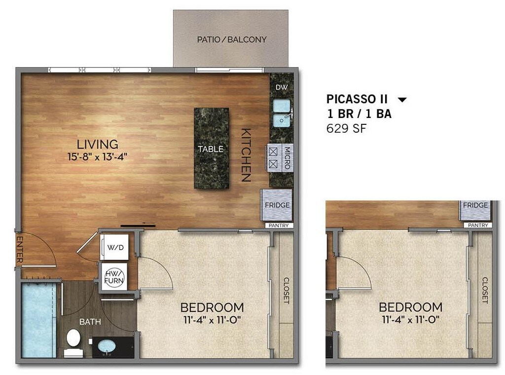 Apartment Model: 1BR/1BA - PicassoFrom $1,4951 Bedroom, 1 Bath, 629 sq ftAvailable Now![]()