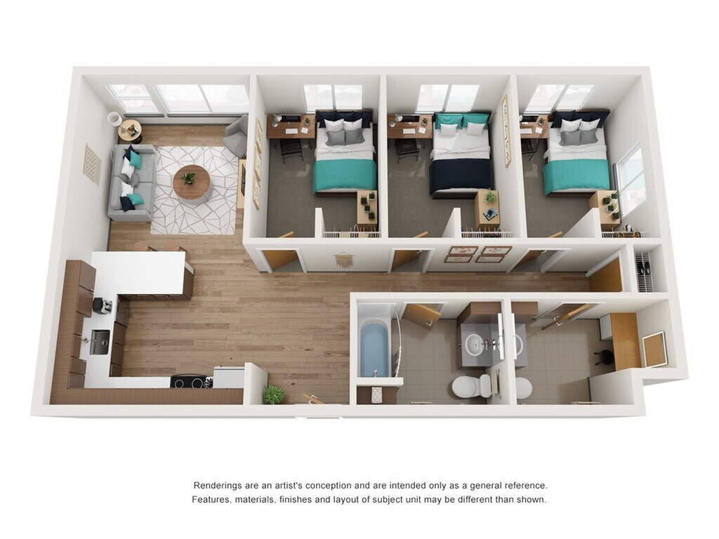 3x1.5 C1 - Floorplan 1 Apartment Unit: PrivateApartment Model: 3x1.5 C1$1,1093 Bedroom, 1.5 Bath, 987 sq ftAvailable September 19, 20264 Bedrooms