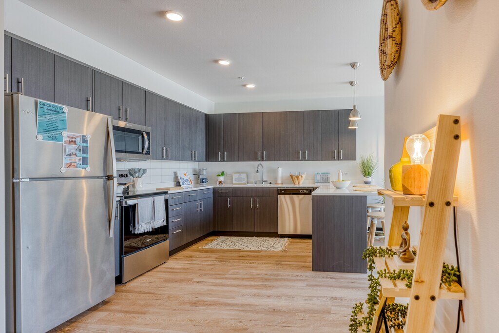 Stateside is like no other off-campus apartments near WWU with an eco-friendly, imaginative, and people-centric approach to help you get the most out of your student experience. From cozy studios all the way to spacious six-bedroom/three-bathroom floor plans for you and your roommates, quality features are found in every detail of fully furnished living — modern kitchens with stone countertops, luxe wood-style flooring, smart laundry machines, and more. And our modern amenities? Coming home will feel like an oasis with a rooftop lounge surrounded by the picturesque, charming beauty of Bellingham Bay and downtown. At Stateside, everyone is welcome to experience unparalleled student living.