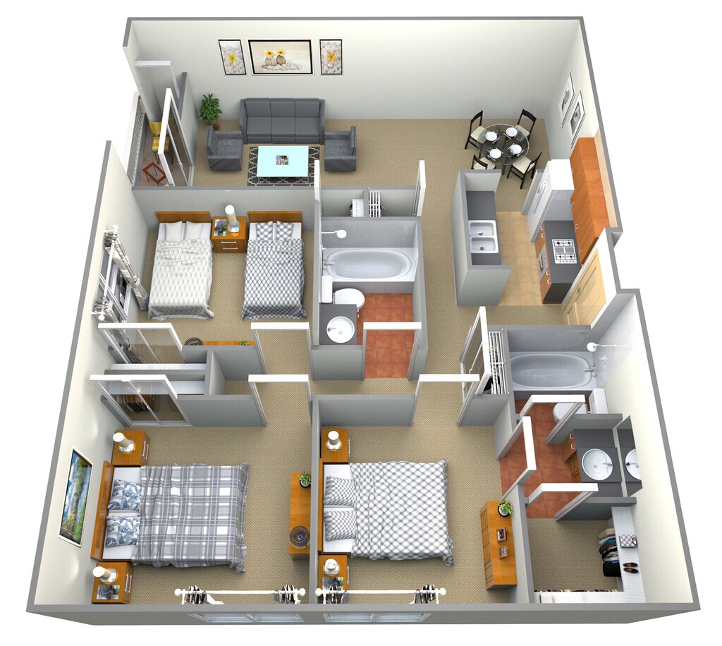 3 Beds, 2 Baths, 1250 sq ftModel Gallery