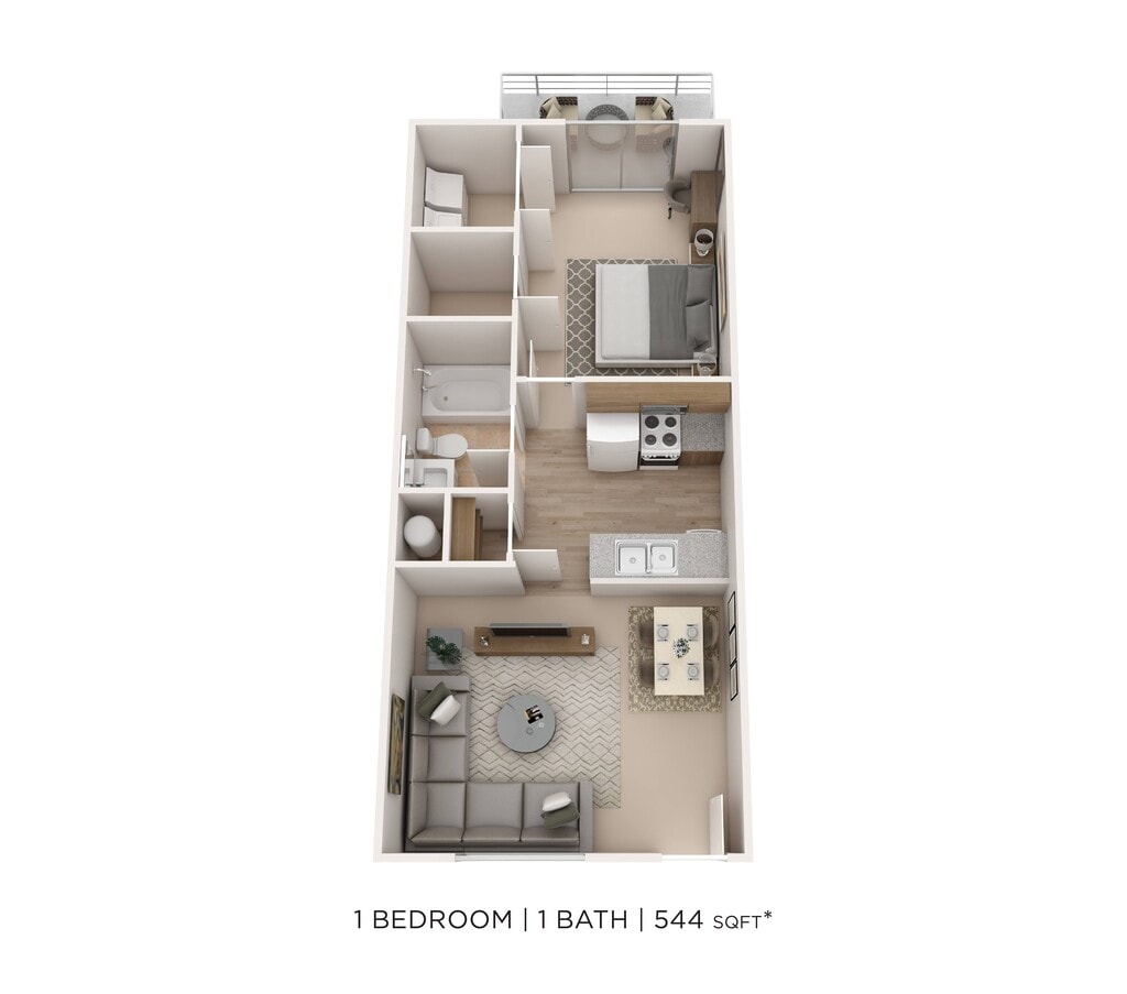 Apartment Model: One Bedroom- 544 sqftFrom $1,0201 Bedroom, 1 Bath, 544 sq ftAvailable Now![]()