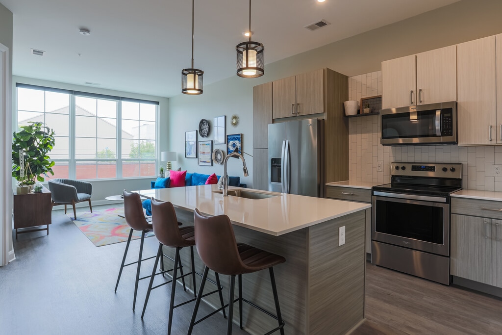 Station 324 is a luxury apartment community in Columbus, Ohio's Italian Village neighborhood, near the Short North and Downtown. Our pet-friendly apartments for rent offer a variety of floor plans, including studio, one, and two-bedroom options. All have luxury finishes, such as wood-style plank floors, oversized windows with roller shades, quartz countertops, walk-in closets, and plenty more!