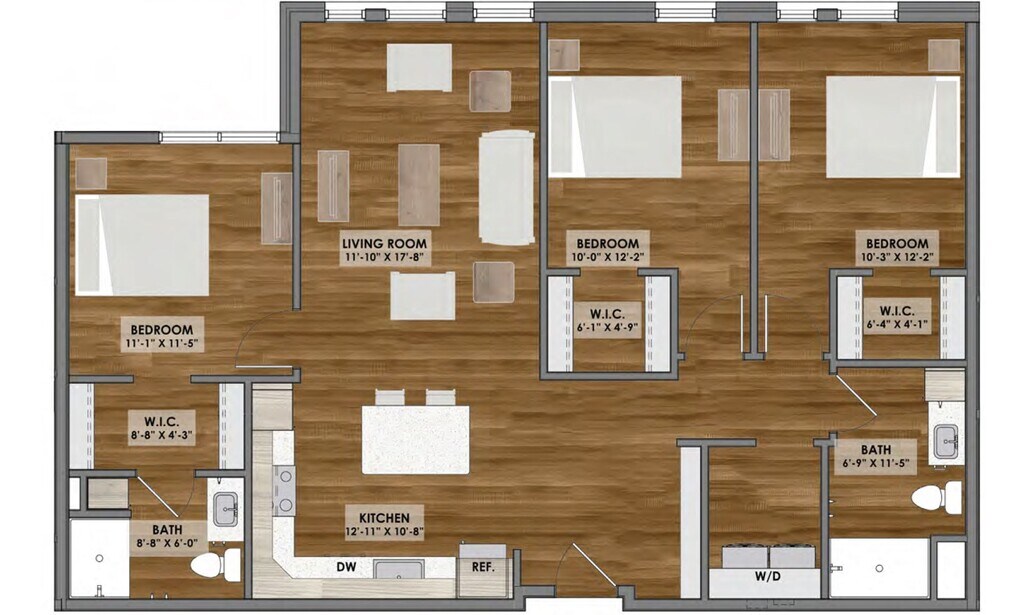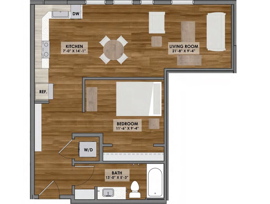 Apartment Model: B1 Layout$1,4001 Bedroom, 1 Bath, 729 sq ftAvailable NowFloorplansPhotos![]()