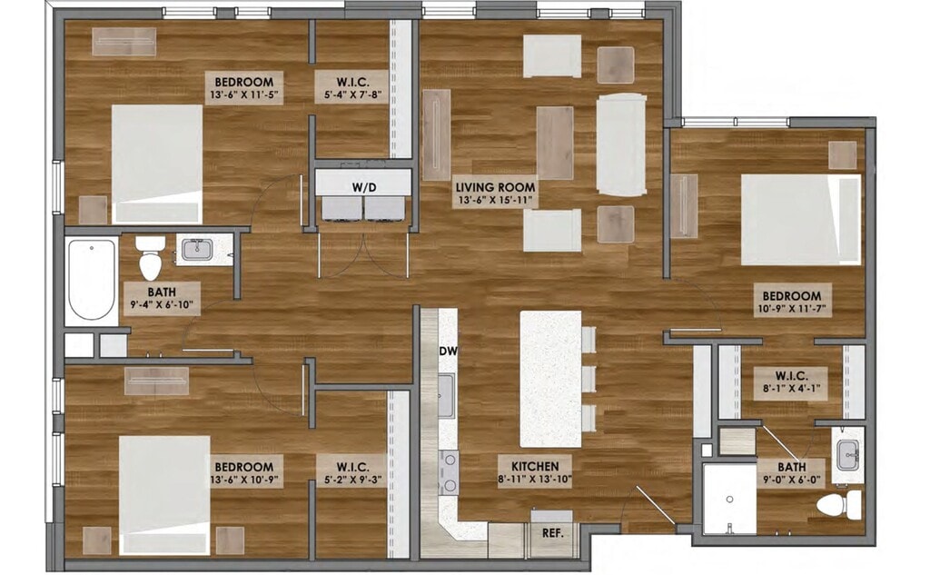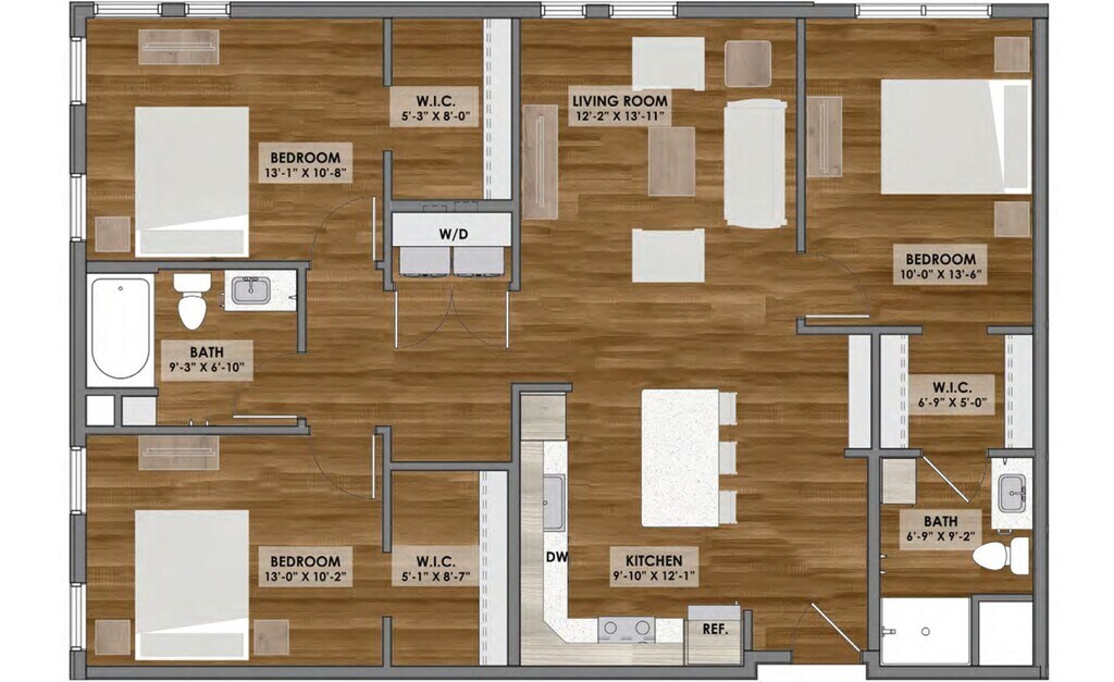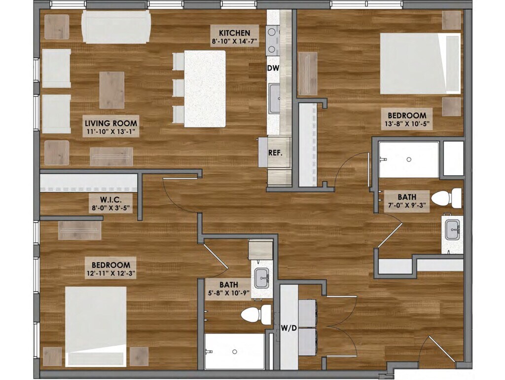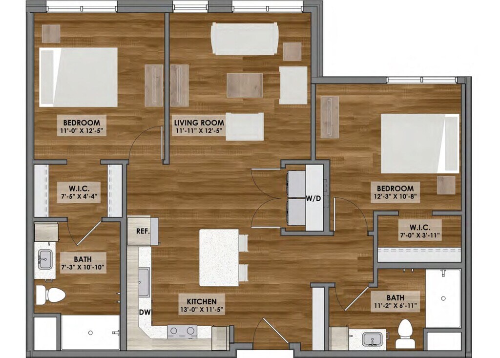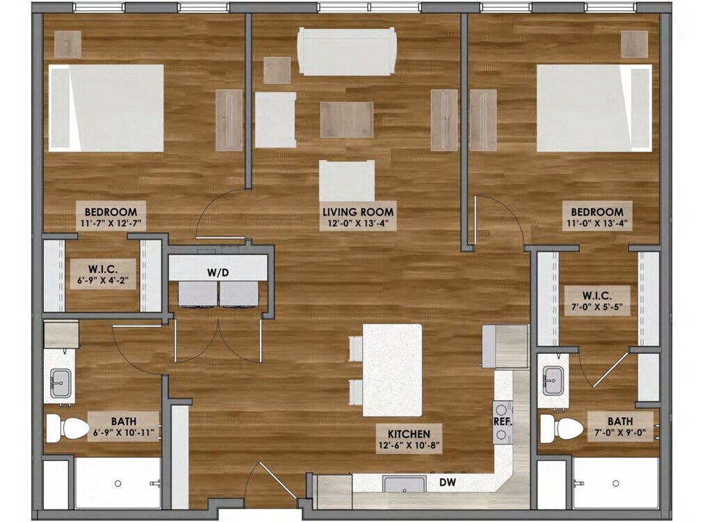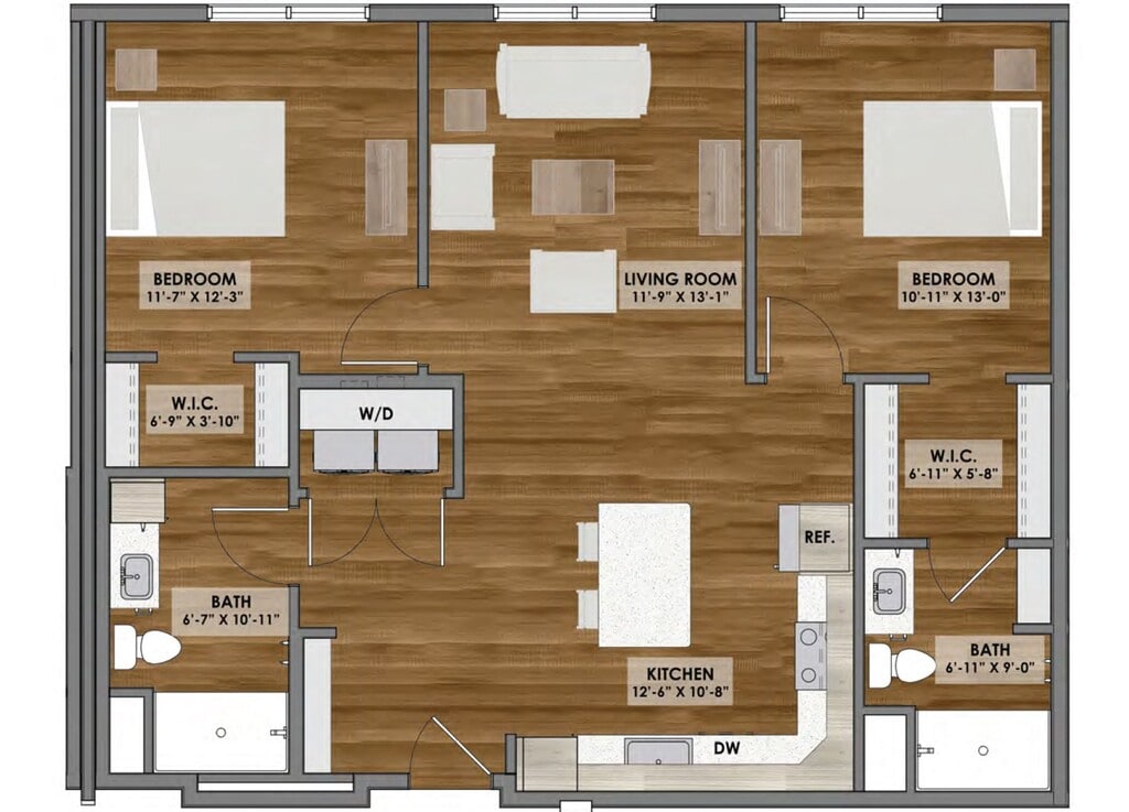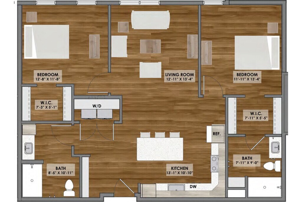Apartment Model: D1 Layout$1,5902 Bedroom, 2 Bath, 1004 sq ftAvailable NowFloorplansPhotos![]()