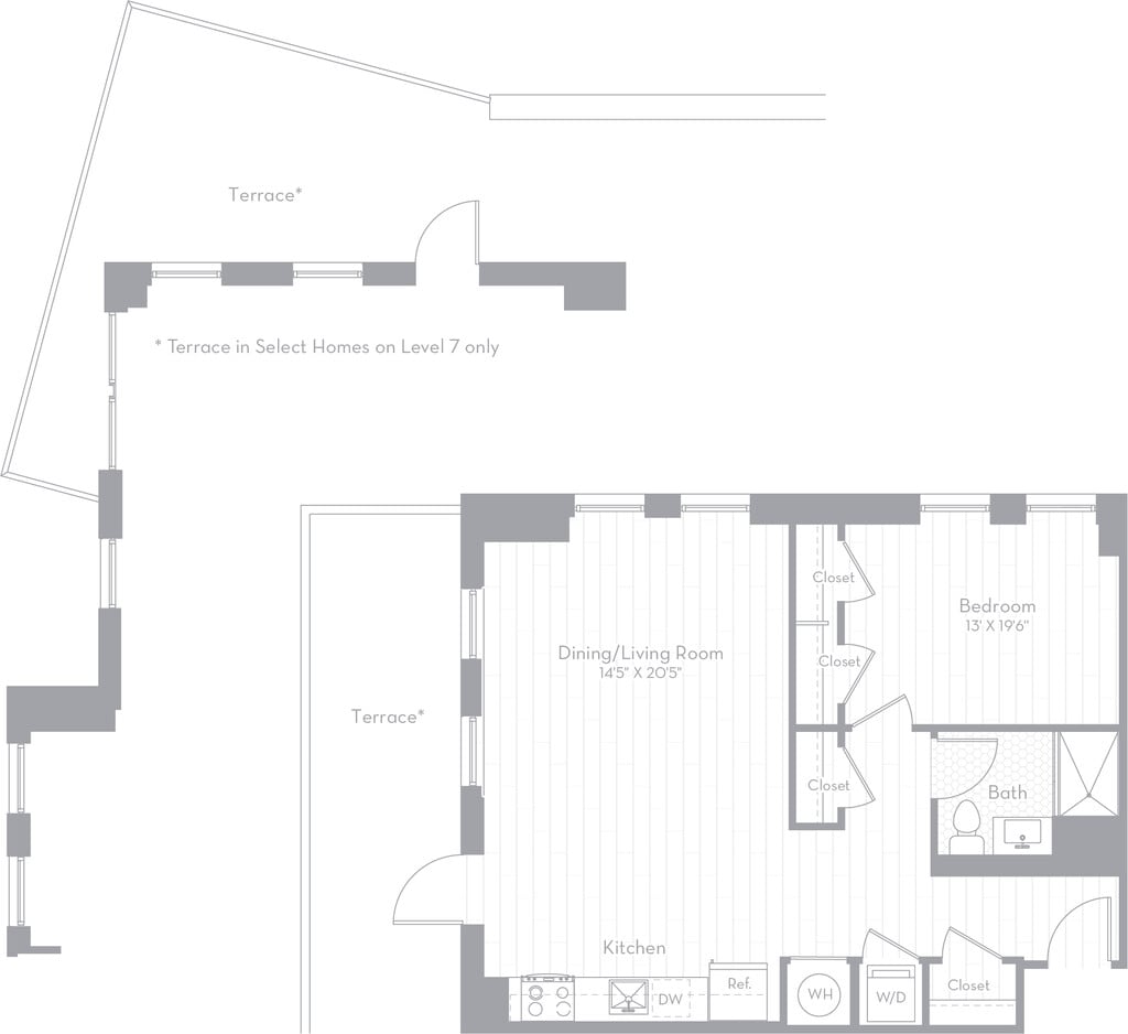 Apartment Model: 1 Bed/1 Bath-A07From $2,5351 Bedroom, 1 Bath, 686 sq ftAvailable Now![]()