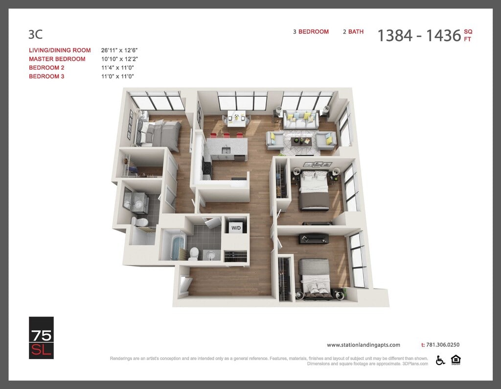 Station Landing Apartments offers Studio to 3 Bedroom apartments starting from $2,726 and having 559–1,431 sq ft. Here is the current pricing and availability: