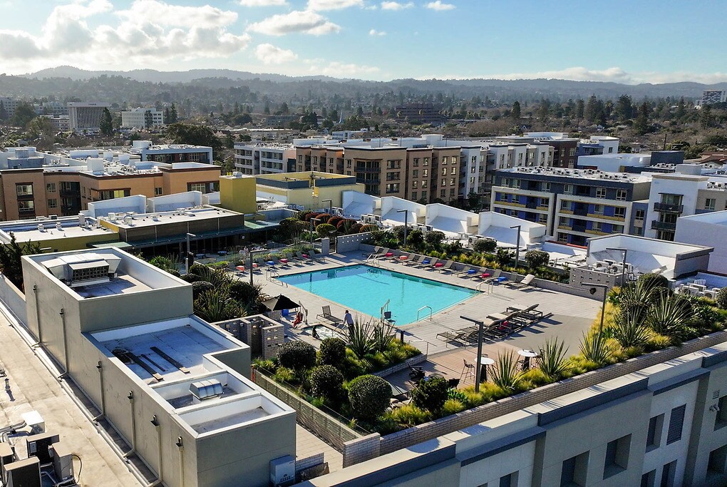 We offer Self-Guided Tours by Appointment Only. Welcome to life perfectly stationed at the brand new apartments of Station Park Green in San Mateo, CA. Our sleek and modern apartments are designed for today's lifestyles. Enjoy your pick of studio, one-, two- or three-bedroom apartment homes. A mosaic of masterfully chosen details is present in-room and across the community as a whole. Station Park Green sets the stage for an elevated lifestyle and offers a broad palette of amenities. The rooftop pool and clubhouse are the ideal settings for mingling over games and enjoying San Mateo's desirable climate. Our state-of-the-art fitness center will keep you healthy and active. Adding to the appeal, our brand new community wraps around a central neighborhood park and entertainment pavilion, which plays host to a variety of creative community programs. The Station Park Green experience is replete with 25,000 square feet of retail space on the ground floor. Here, you will find everything from convenience to a delicious and satisfying meal. Perhaps our best amenity is our unrivaled location. Adjacent to Caltrain's Hayward Park Station and conveniently located for quick entry to highways 92, 101 and 280, take advantage of perfect positioning for easy access to the best of San Mateo, Silicon Valley, and all of the San Francisco Bay Area. Price reflected is base rent and does not include mandatory or optional fees. Detailed fee information and fee schedules can be found on the community's Leasing Info page on our Essex website.