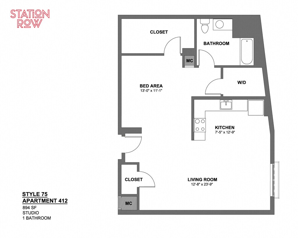 Studio to 3 Bedroom Apartments at Station Row currently range from $2,377 to $2,885