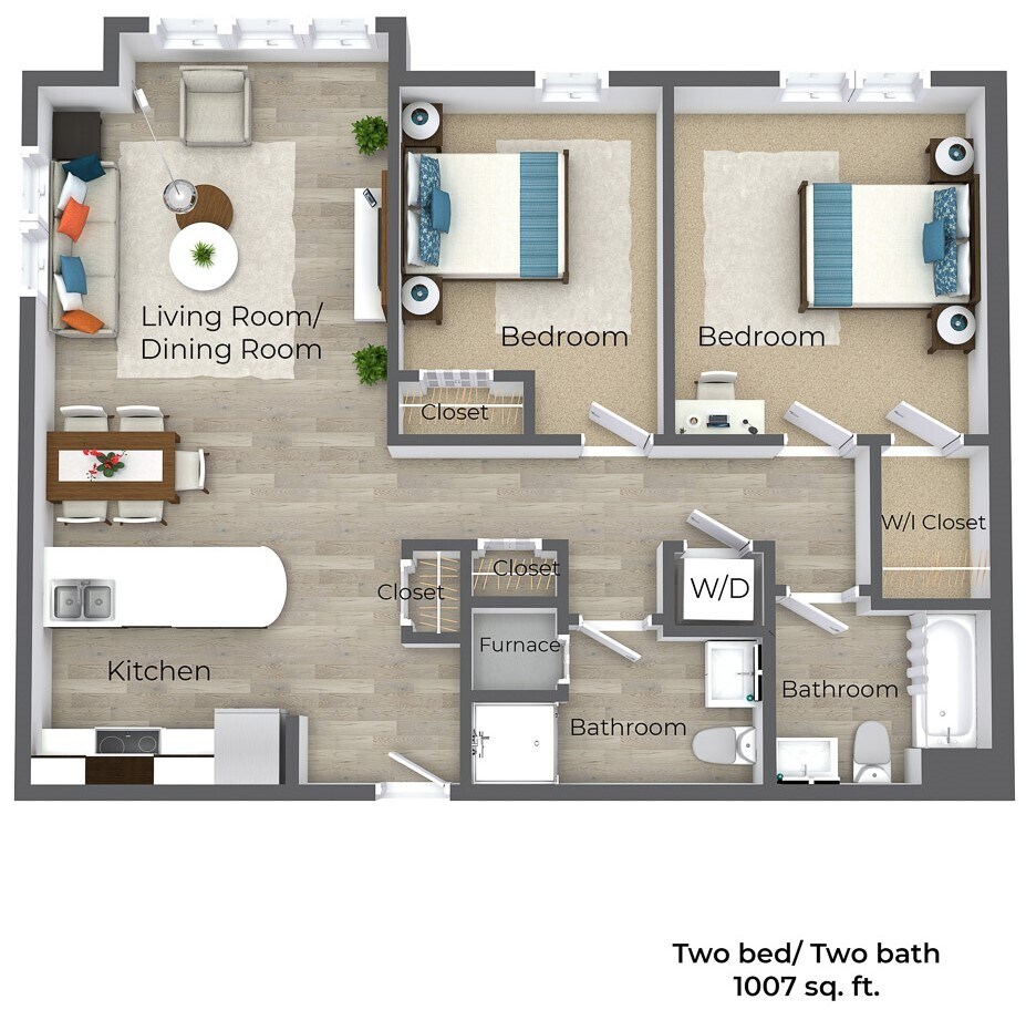 Two Bedroom - Two Bathroom | 300 North Main St - Floorplan 1
